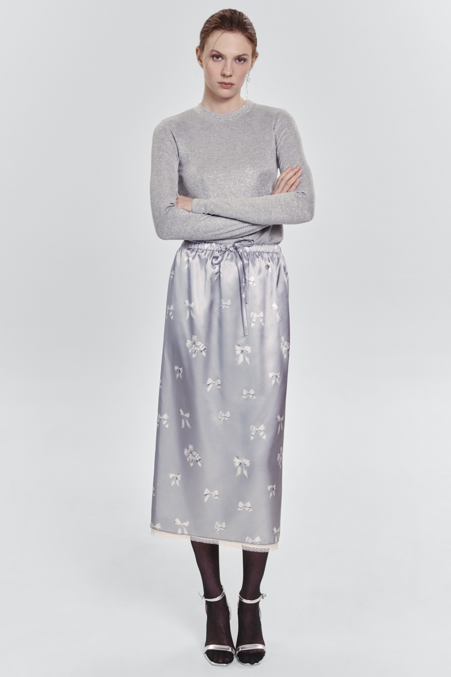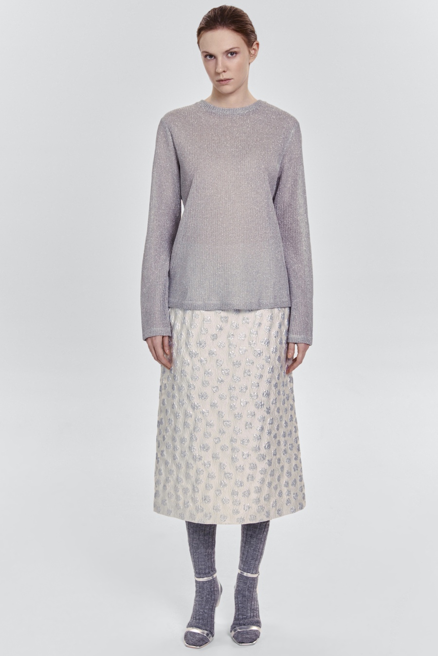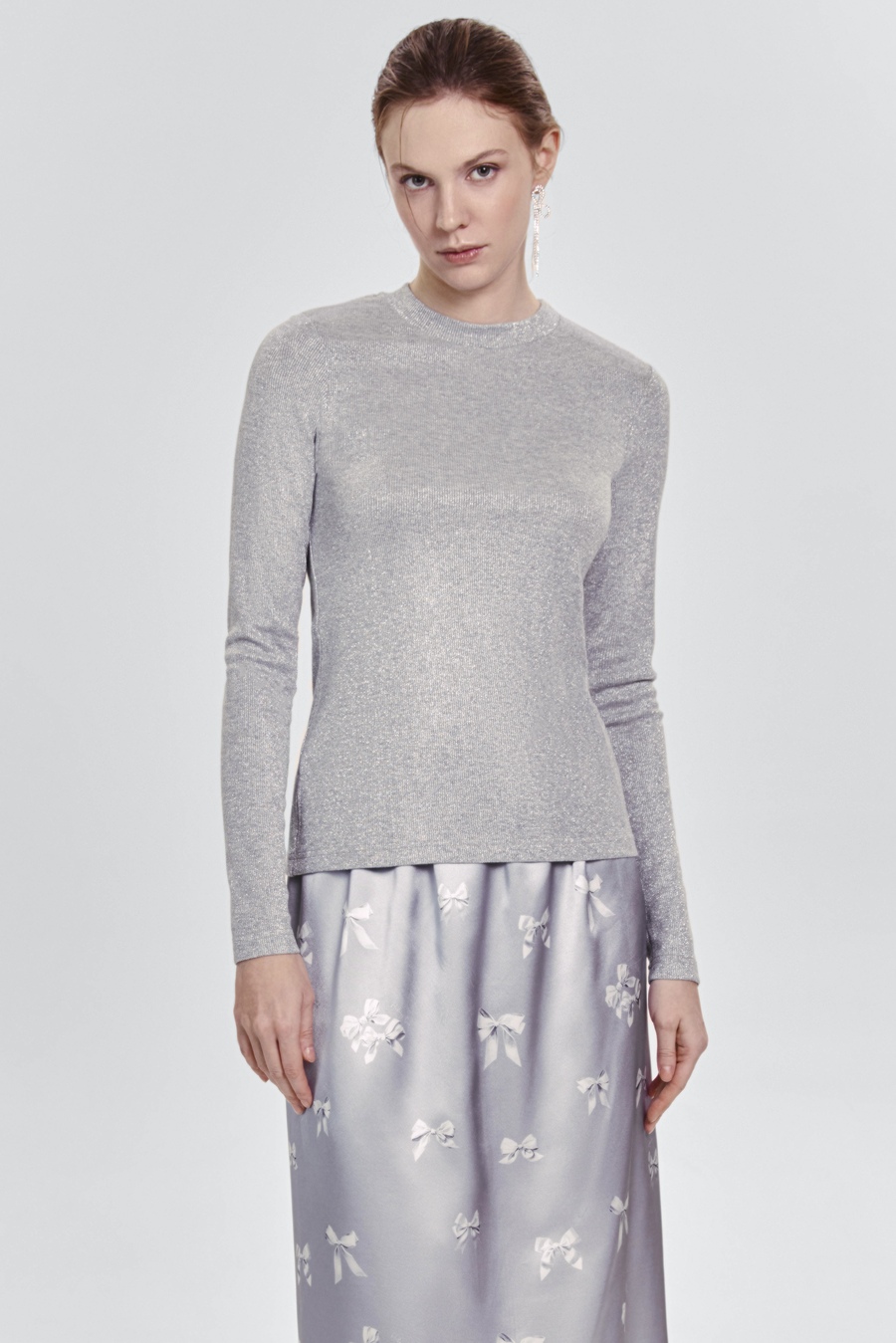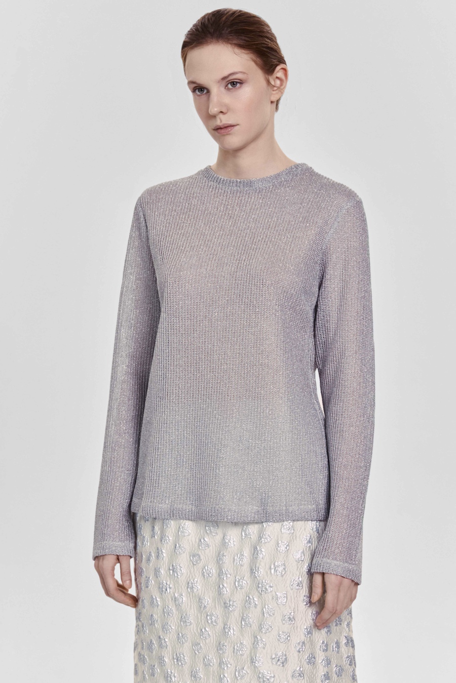 Лонгслив из тонкой итальянской вискозы с люрексом, серый