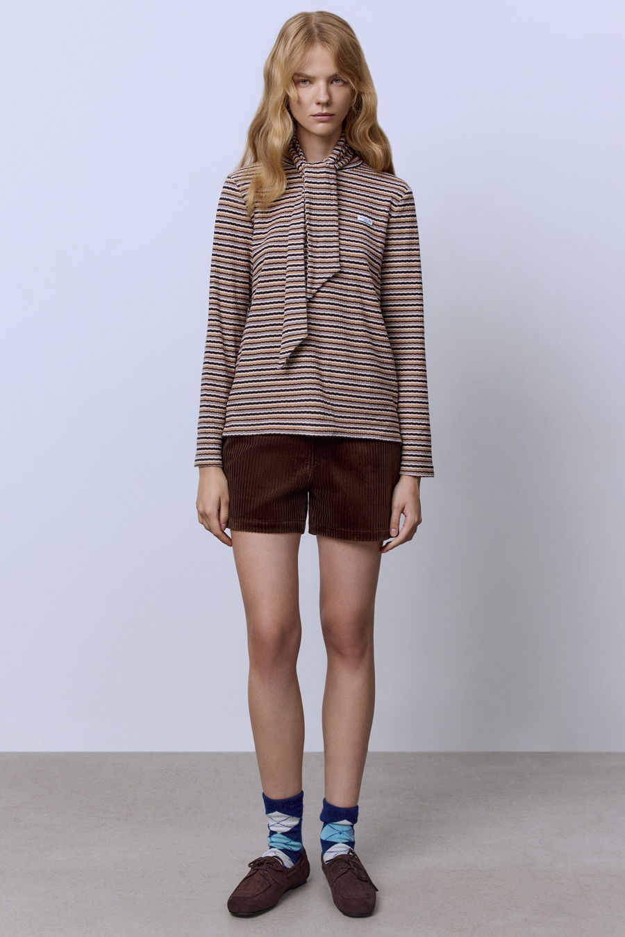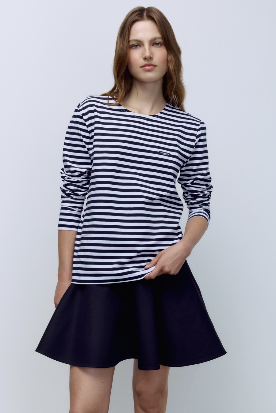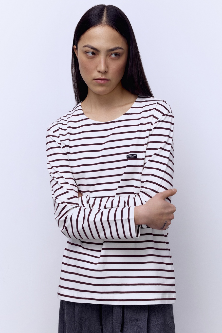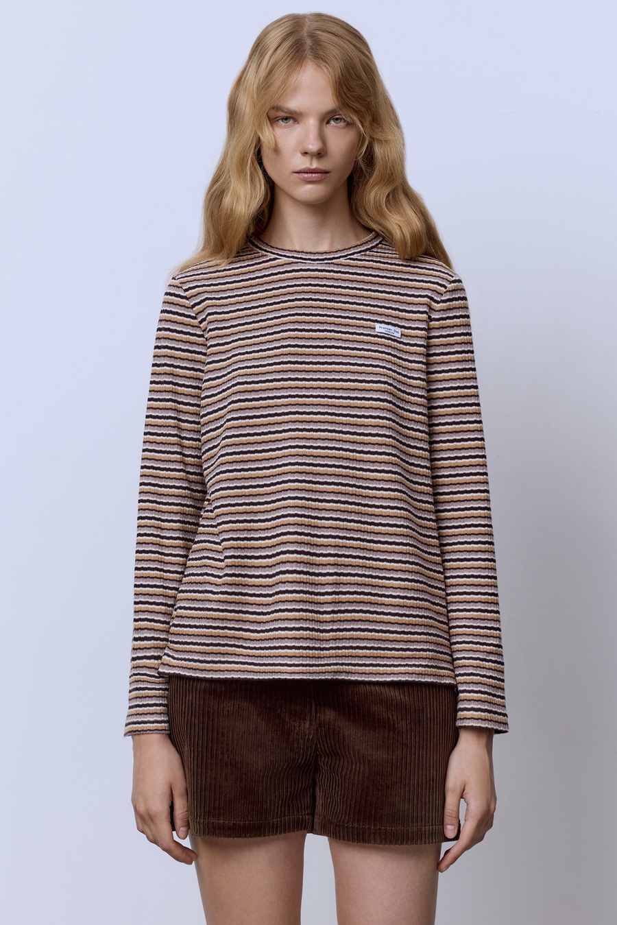 Лонгслив из хлопка в полоску, шоколадный