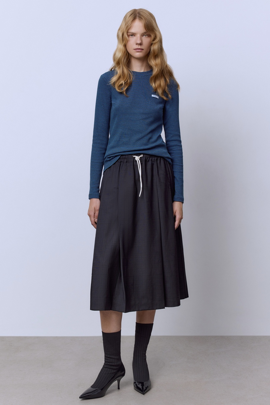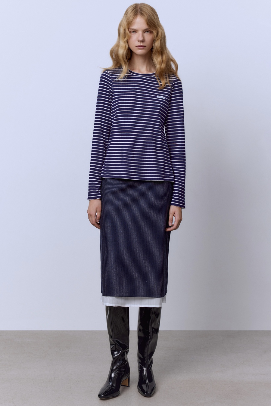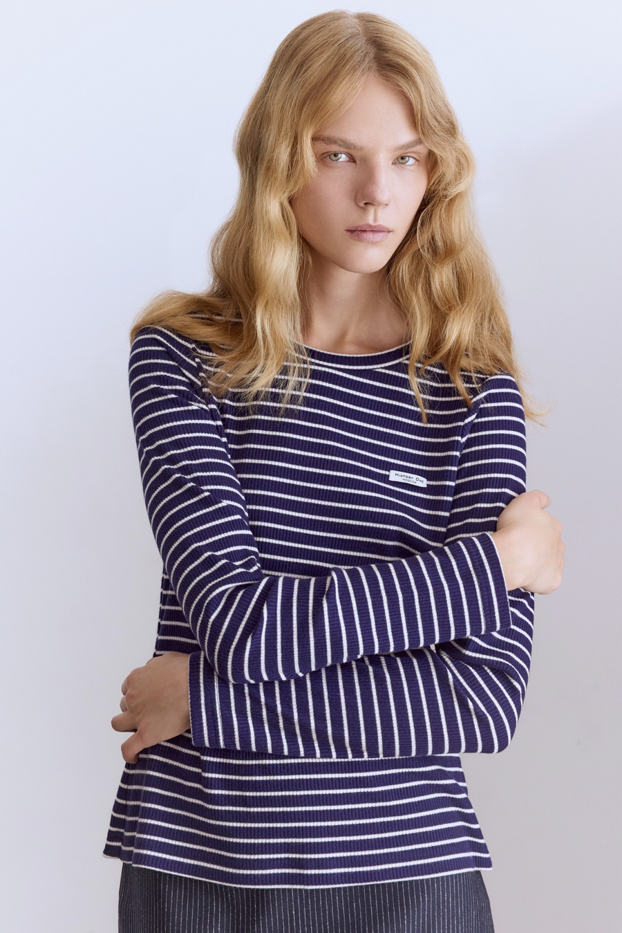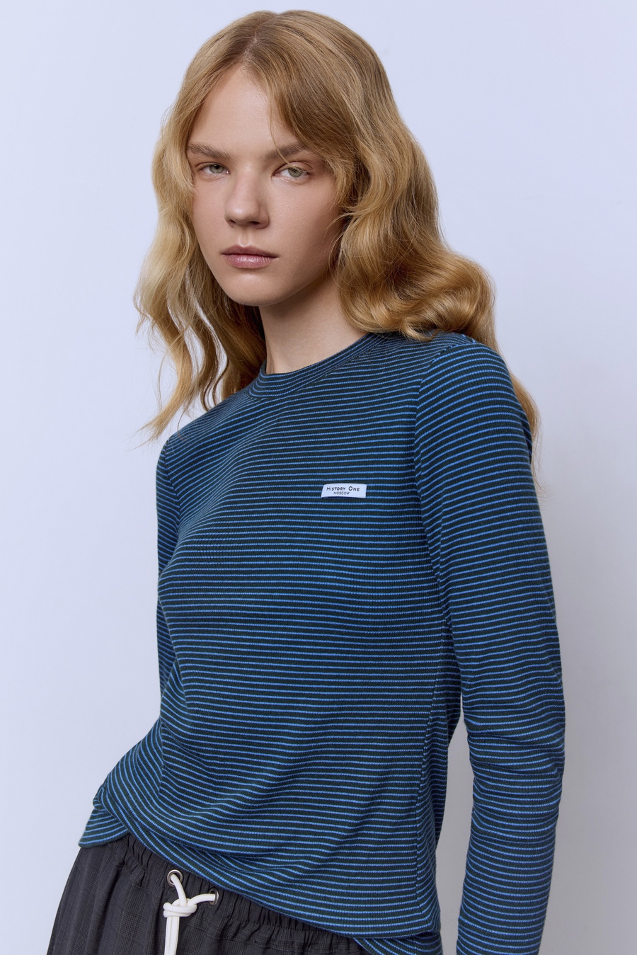 Лонгслив в полоску из рибаны, синий/белый