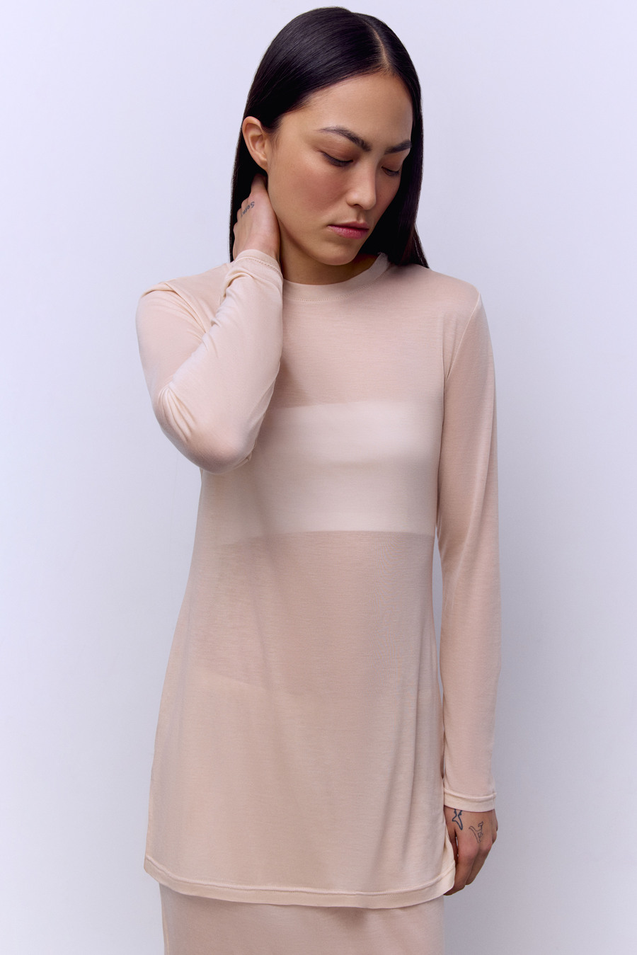 Лонгслив из тонкого тенселя, бежевый