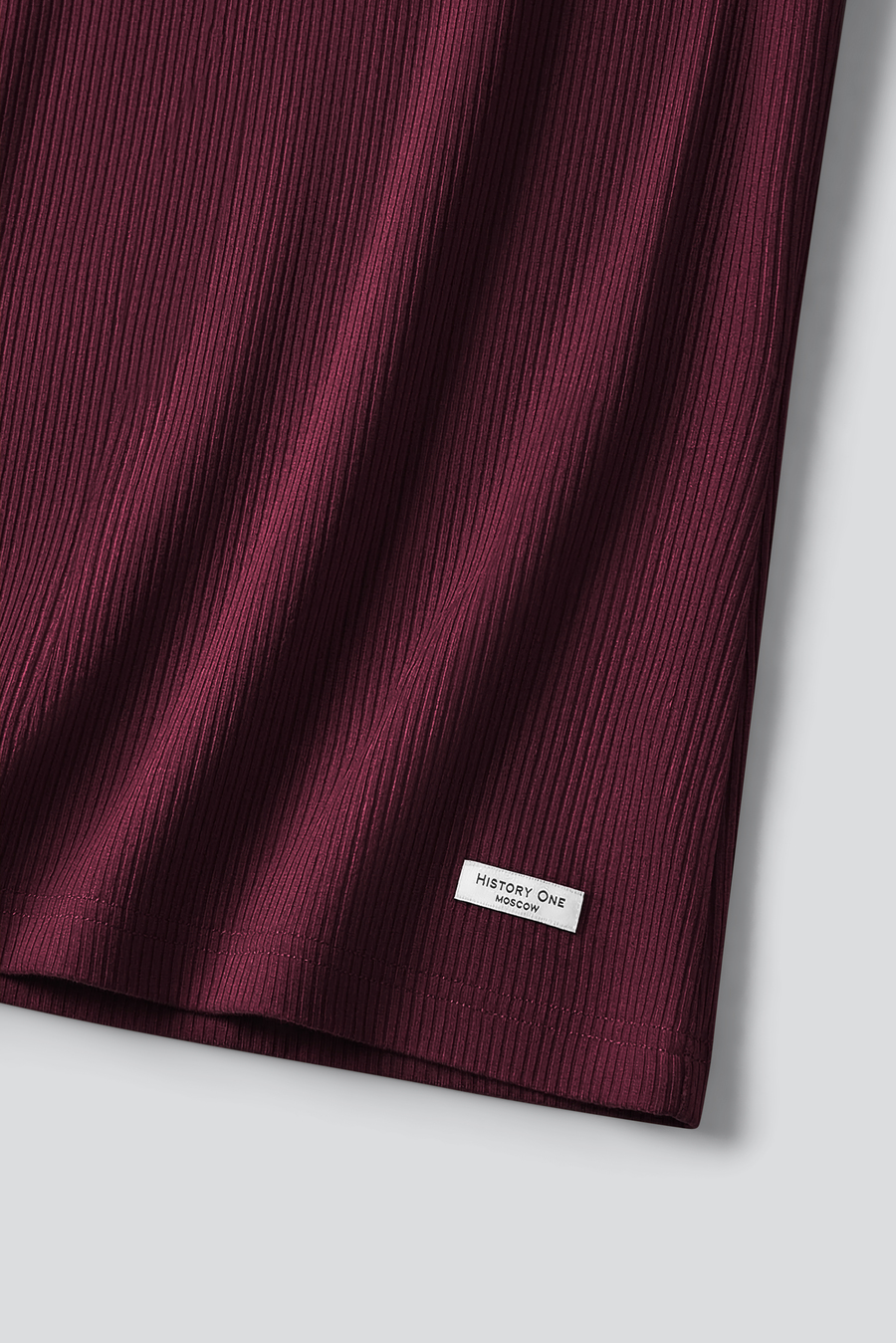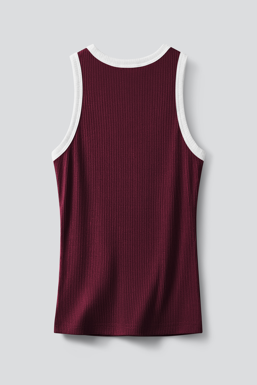 Топ из хлопковой рибаны с контрастной отделкой, бордовый