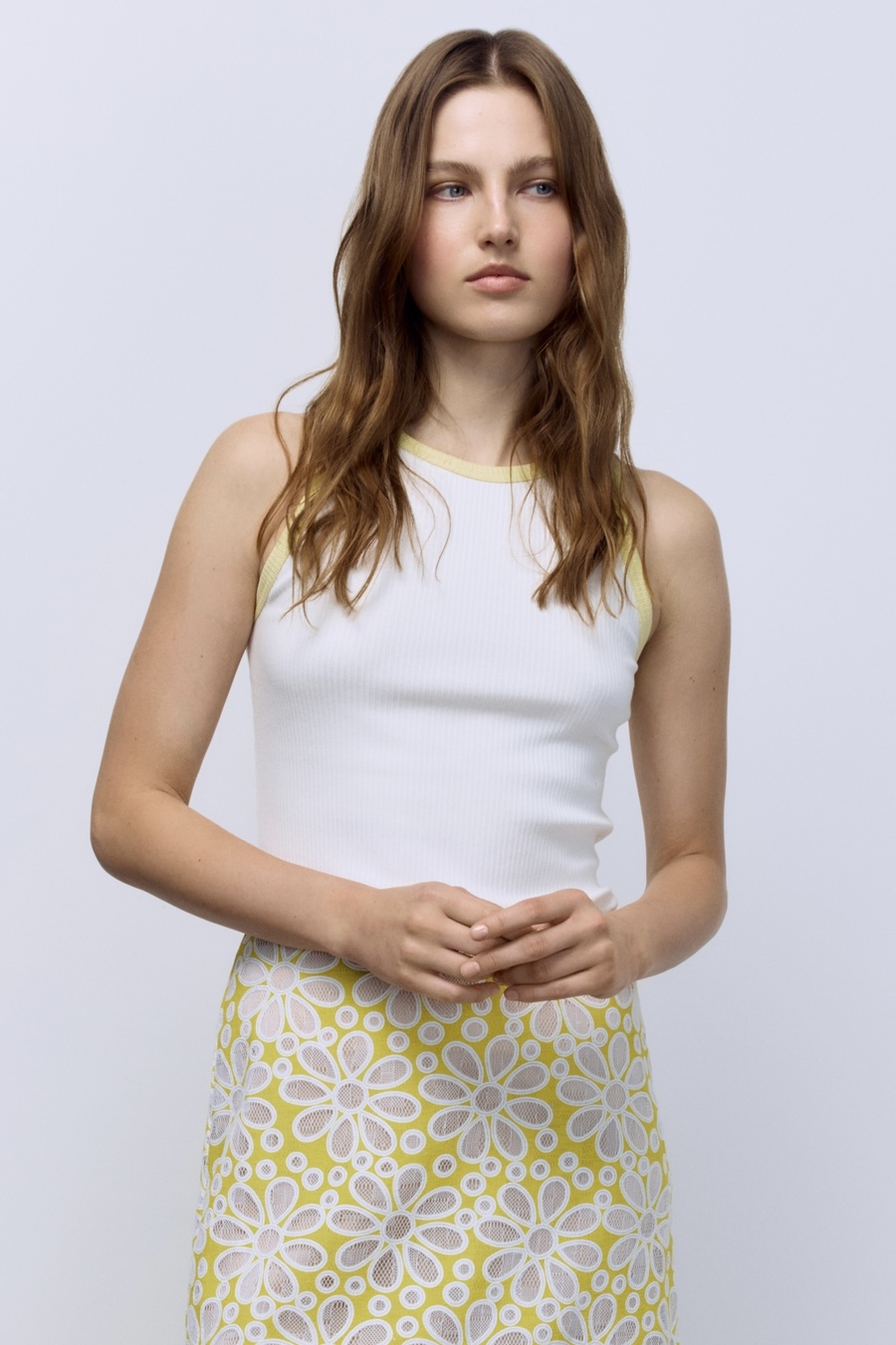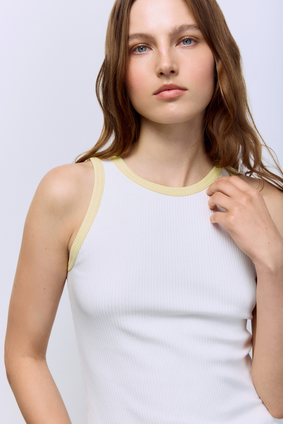 Топ из хлопковой рибаны с контрастной отделкой, белый