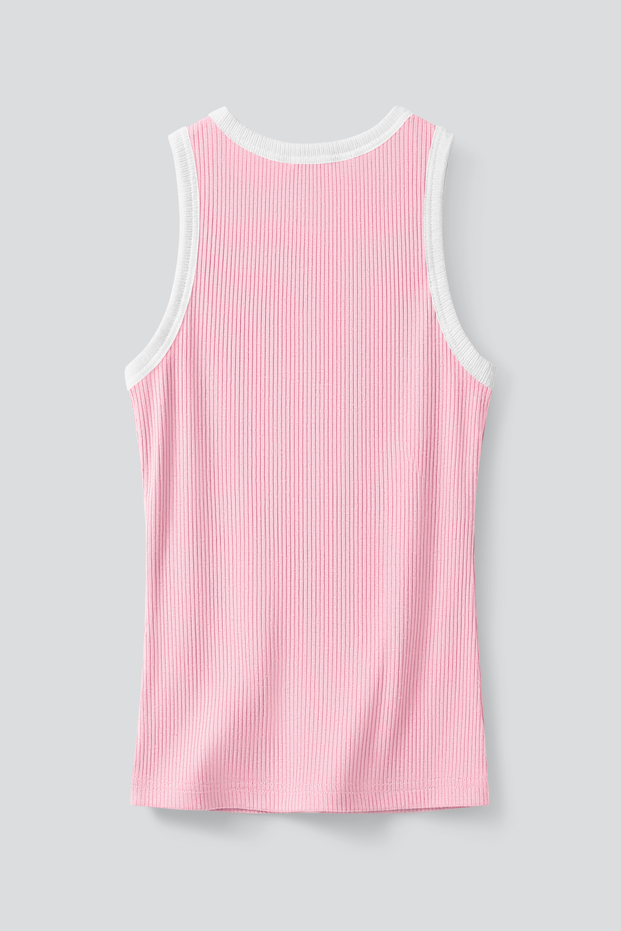 Топ из хлопковой рибаны с контрастной отделкой, розовый