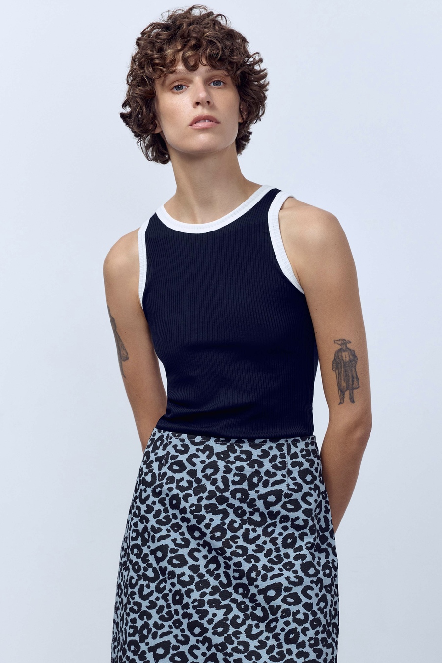 | Таблица размеров | 00028 - Топ из хлопковой рибаны с контрастной отделкой |