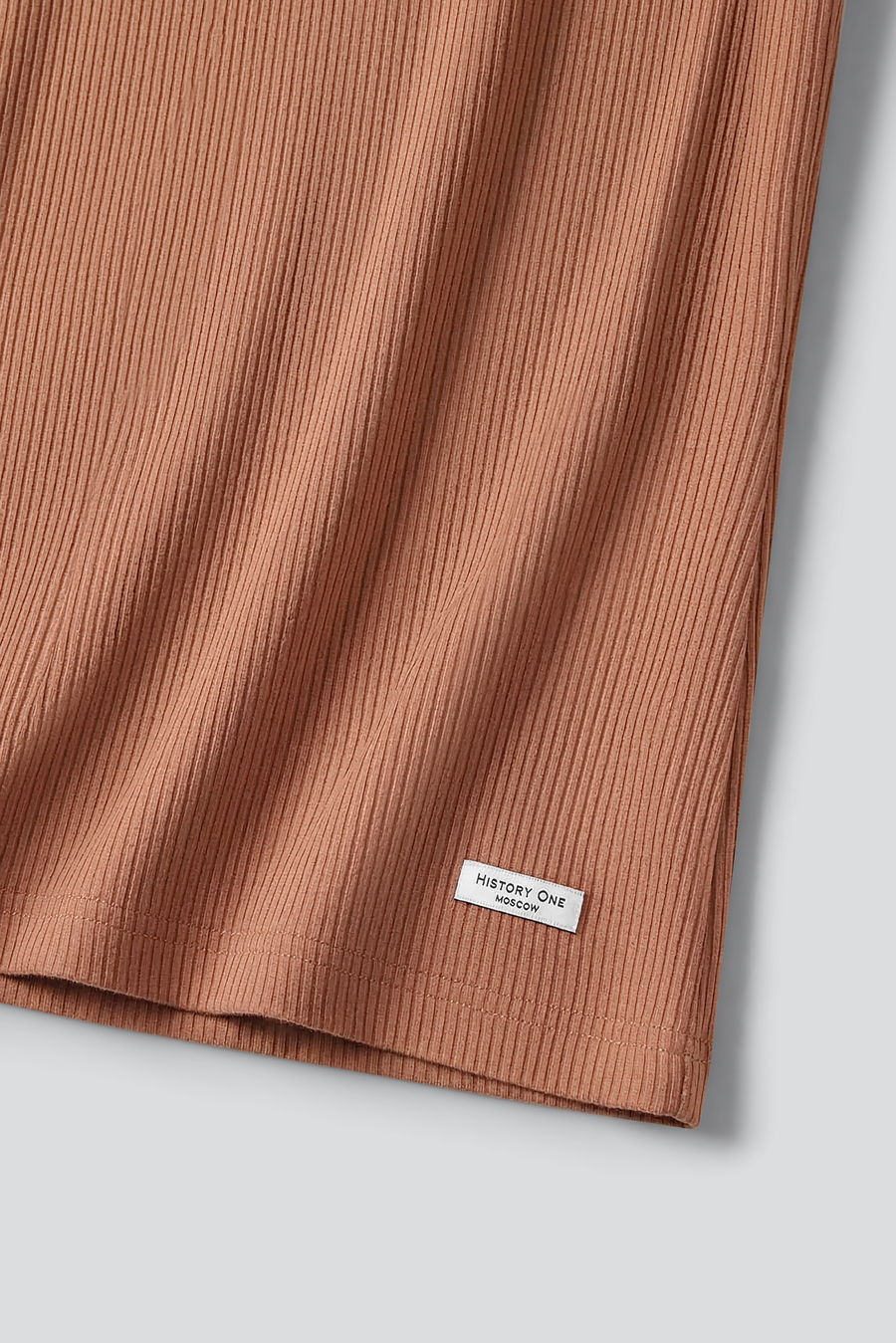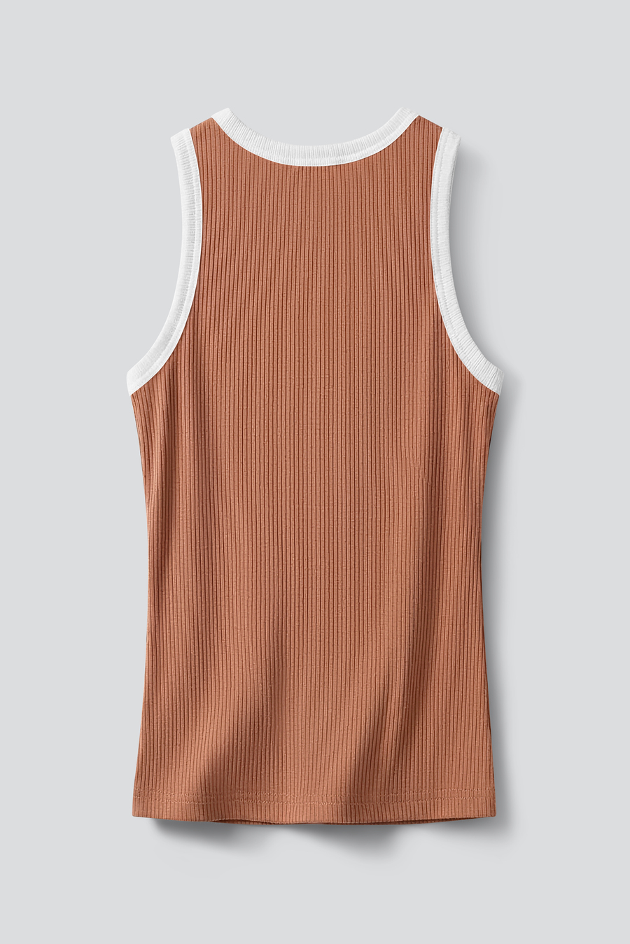 Топ из хлопковой рибаны с контрастной отделкой, терракотовый