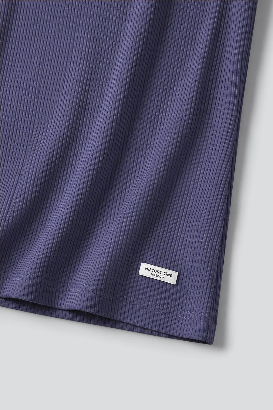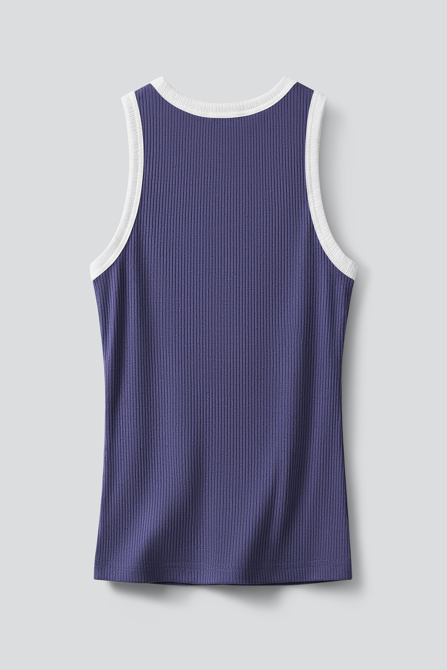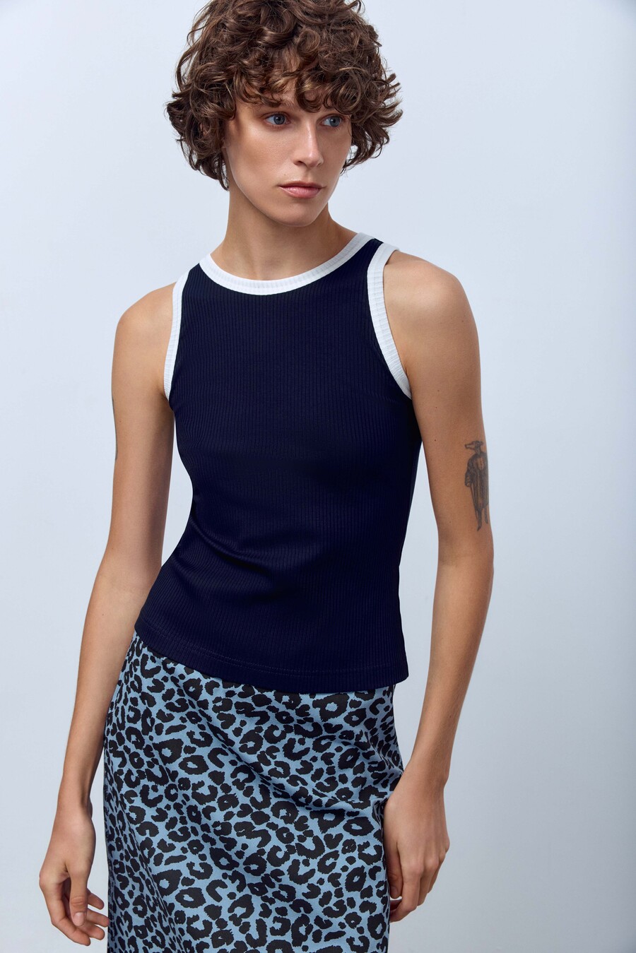 Топ из хлопковой рибаны с контрастной отделкой, синий