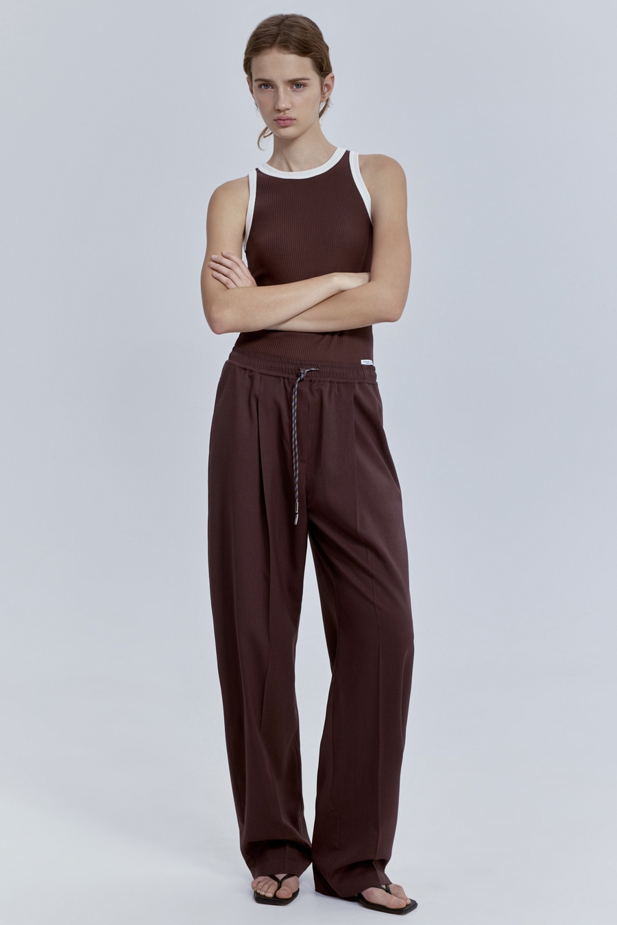 Топ из хлопковой рибаны с контрастной отделкой, шоколад