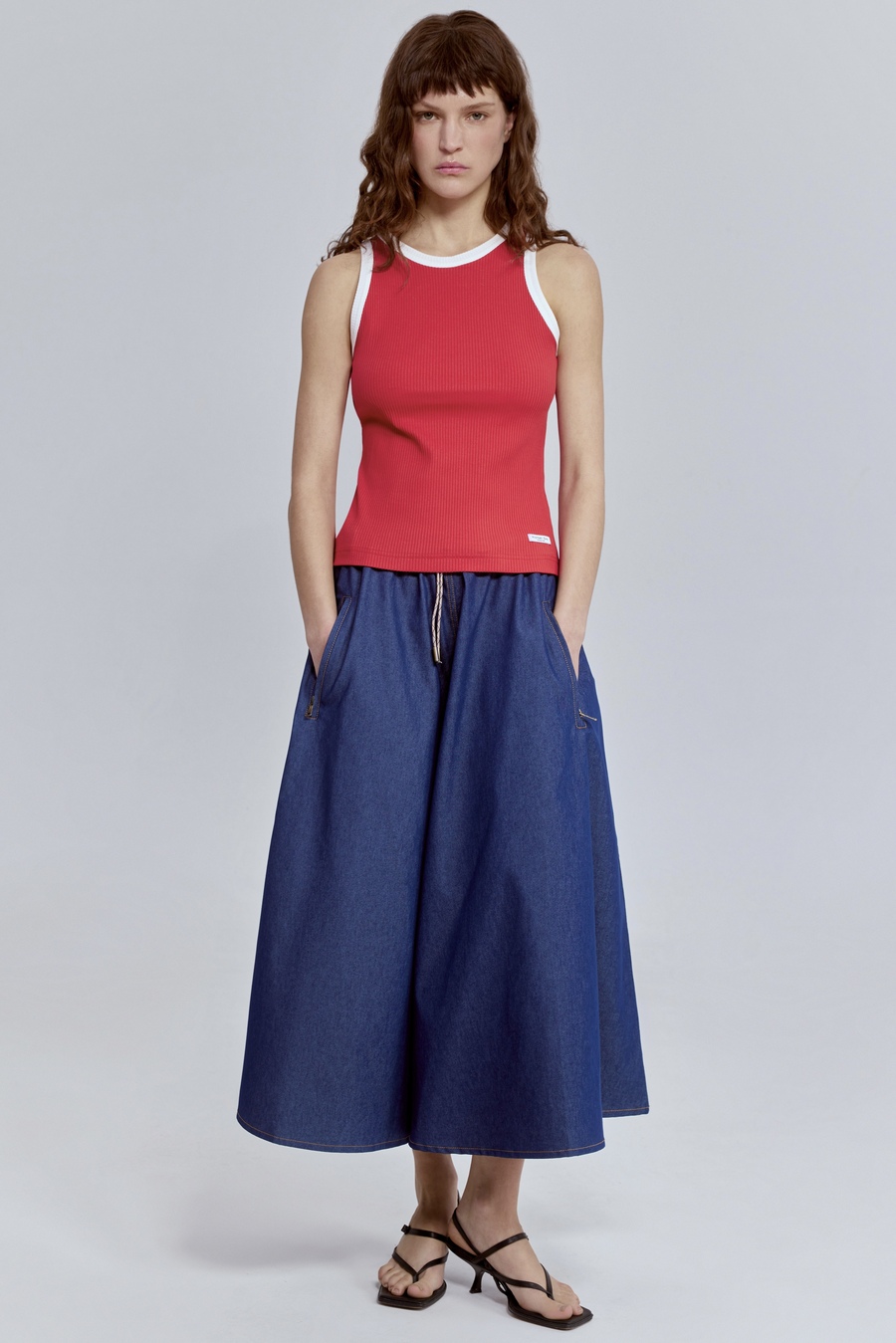 Топ из хлопковой рибаны с контрастной отделкой, красный