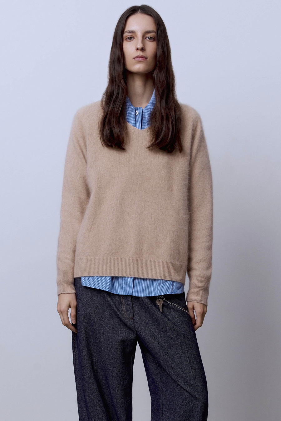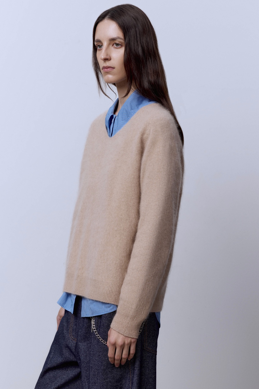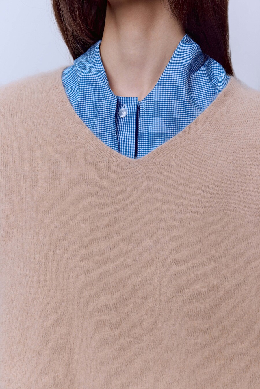 Свитер с V-вырезом из шерсти с кашемиром, бежевый