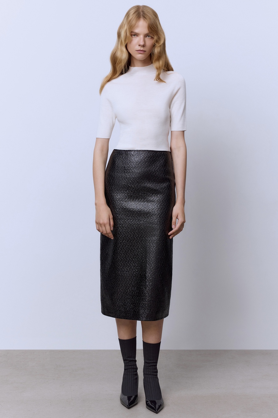 Водолазка с коротким рукавом, молочный