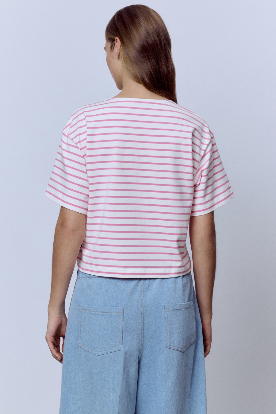 Укороченная хлопковая футболка в горизонтальную полоску — базовое изделие весенней коллекции History One. Идеальный крой, мягкий хлопок, комфортная посадка. Футболка подходит для повседневных образов, спорта, прогулок и отдыха. Сочетайте с джинсами, шортами, юбками и любимой верхней одеждой — куртками или жакетами.