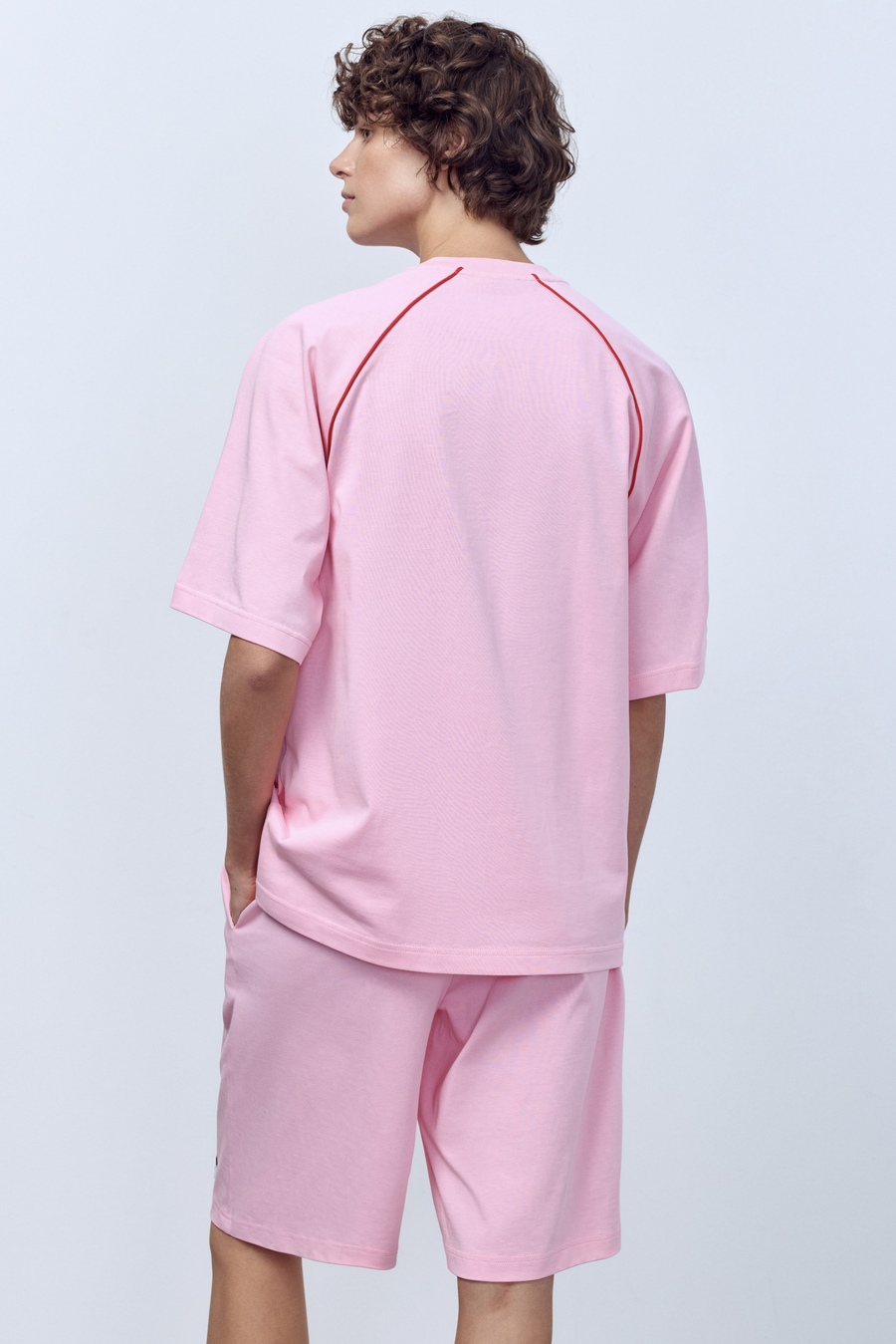 Футболка оверсайз с кантом, розовый