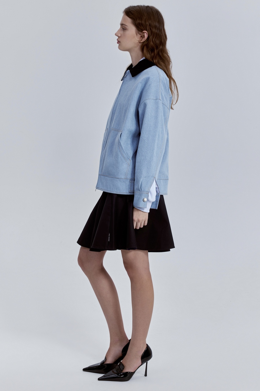 Плотный габардин задаёт чёткую форму и ощущение собранности, а вельветовый воротник добавляет фактуру и благородный контраст. Эта куртка — про баланс функциональности и стиля: практичная, но с характером. Она легко вписывается в городской гардероб и выглядит так, будто прослужит не один сезон, оставаясь актуальной и выразительной.