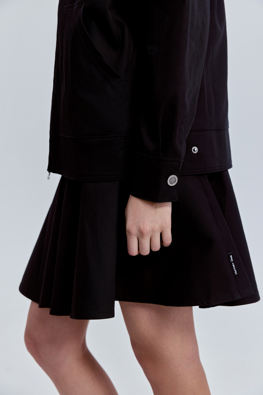 Плотный габардин задаёт чёткую форму и ощущение собранности, а вельветовый воротник добавляет фактуру и благородный контраст. Эта куртка — про баланс функциональности и стиля: практичная, но с характером. Она легко вписывается в городской гардероб и выглядит так, будто прослужит не один сезон, оставаясь актуальной и выразительной.