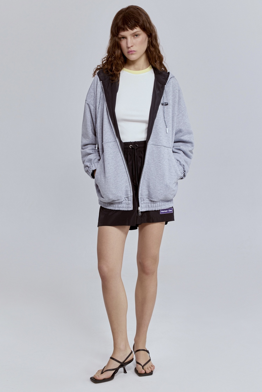 Двусторонняя куртка-толстовка — вещь, которая легко меняет настроение образа. С одной стороны — лаконичность и спокойствие, с другой — новый акцент и свежий взгляд на привычный силуэт.