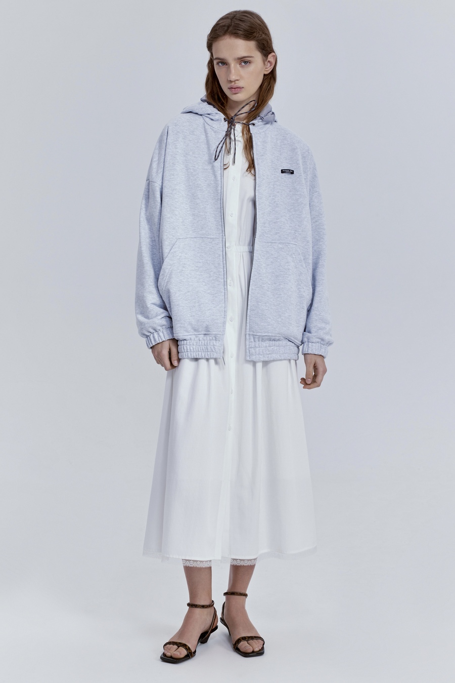 Двусторонняя куртка-толстовка — вещь, которая легко меняет настроение образа. С одной стороны — лаконичность и спокойствие, с другой — новый акцент и свежий взгляд на привычный силуэт.
