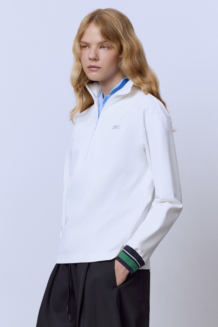 Поло на молнии с длинным рукавом, белый