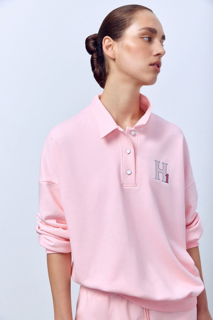 Поло с длинным рукавом из футера, розовый