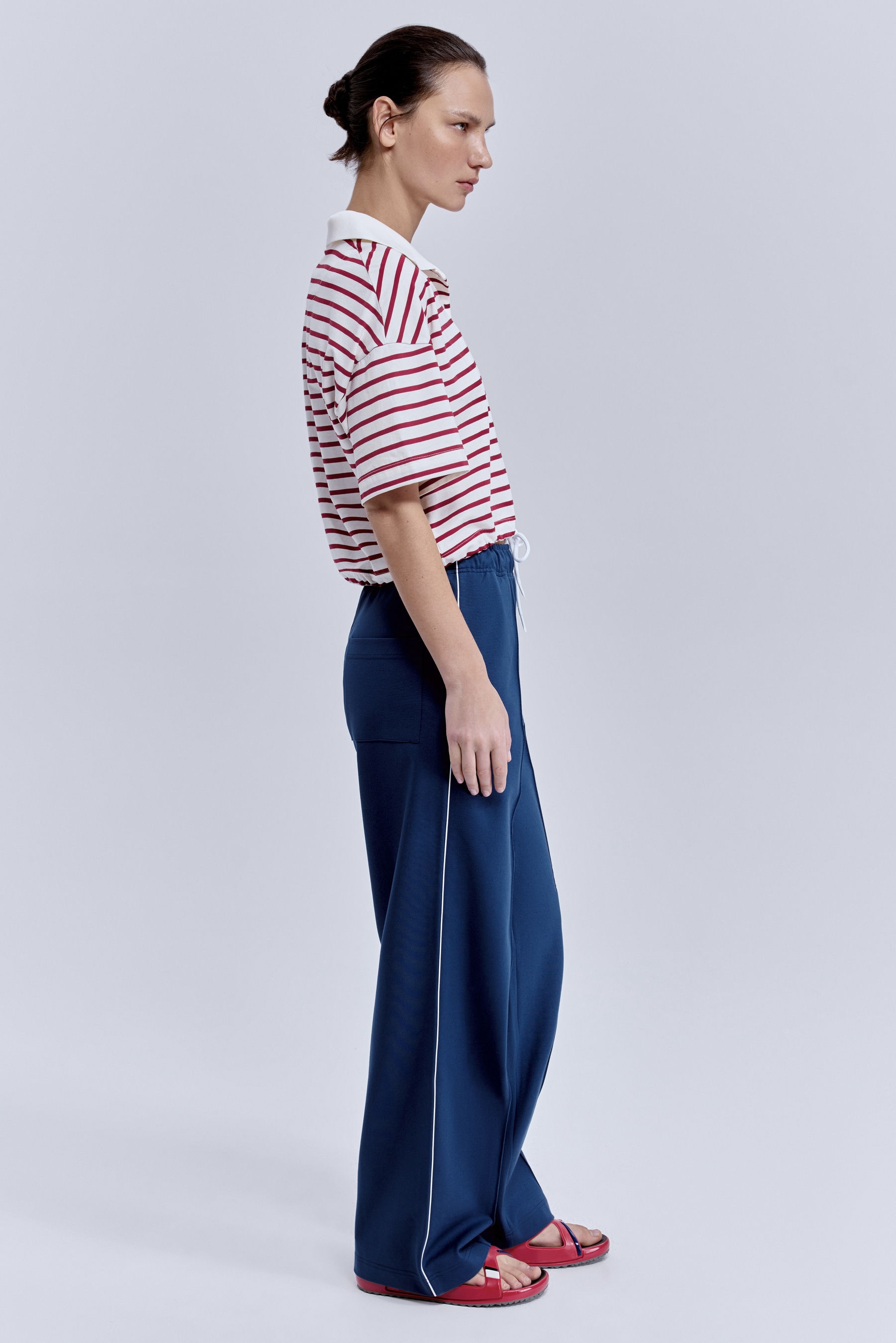Графичная полоска задаёт ритм, а кулиска позволяет вам регулировать силуэт — от расслабленного до подчеркнуто дерзкого. Эта вещь не подстраивается под правила, а помогает вам создавать собственные.
