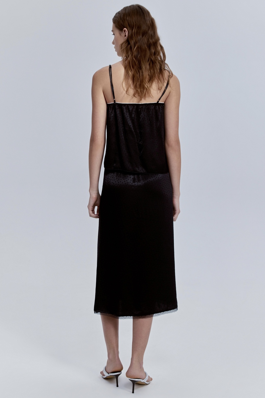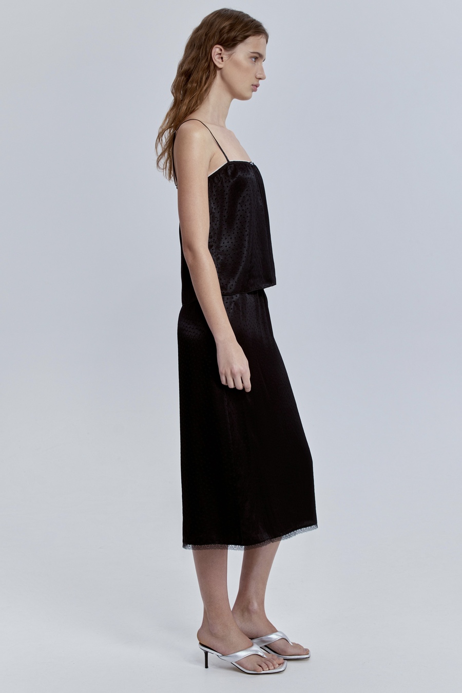 Бельевой топ из атласа — это тонкая грань между расслабленной роскошью и чувственной элегантностью. Его гладкая ткань мягко скользит по коже, отражая свет деликатным сатиновым блеском, будто подчеркивая уверенность своей обладательницы.