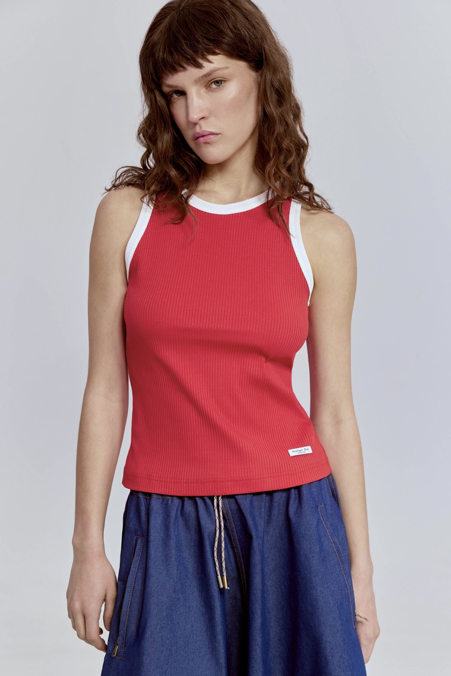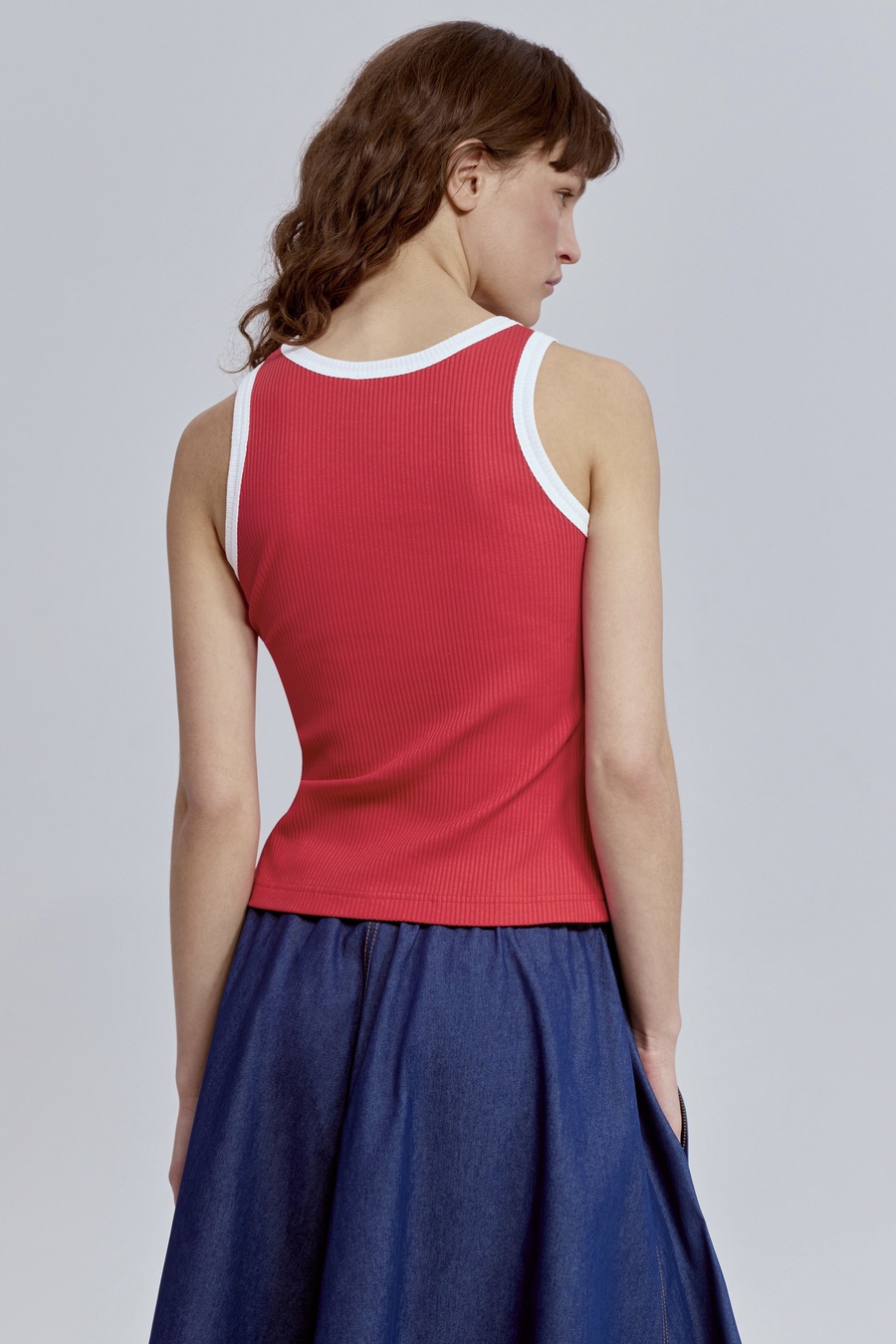 Топ из хлопковой рибаны с контрастной отделкой, красный