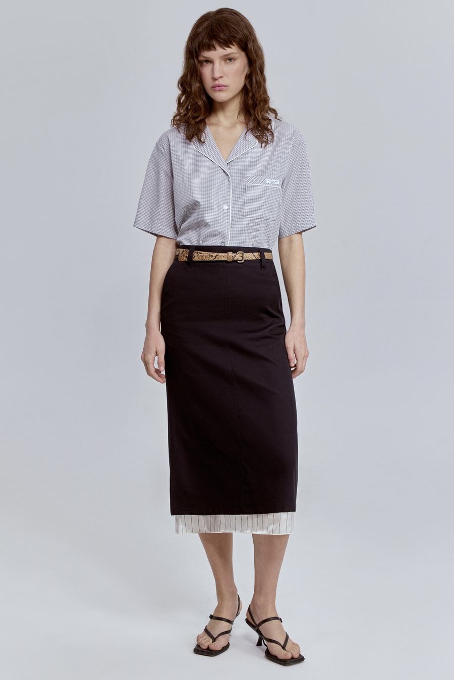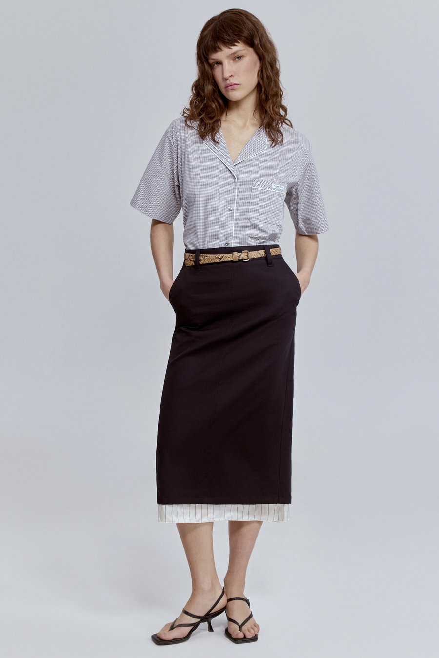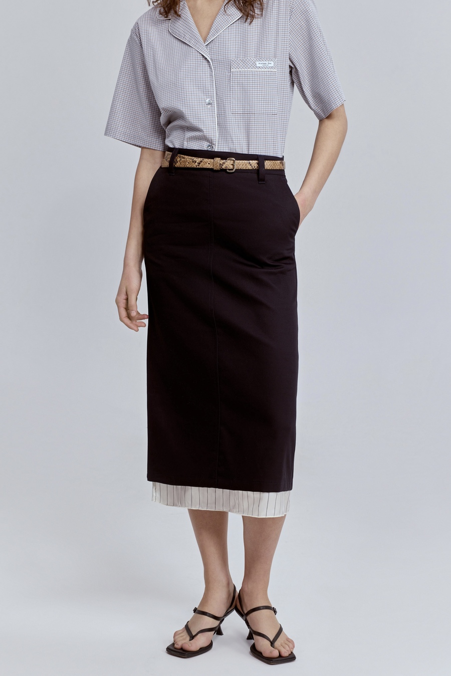 Юбка прямая с контрастной подкладкой, чёрный