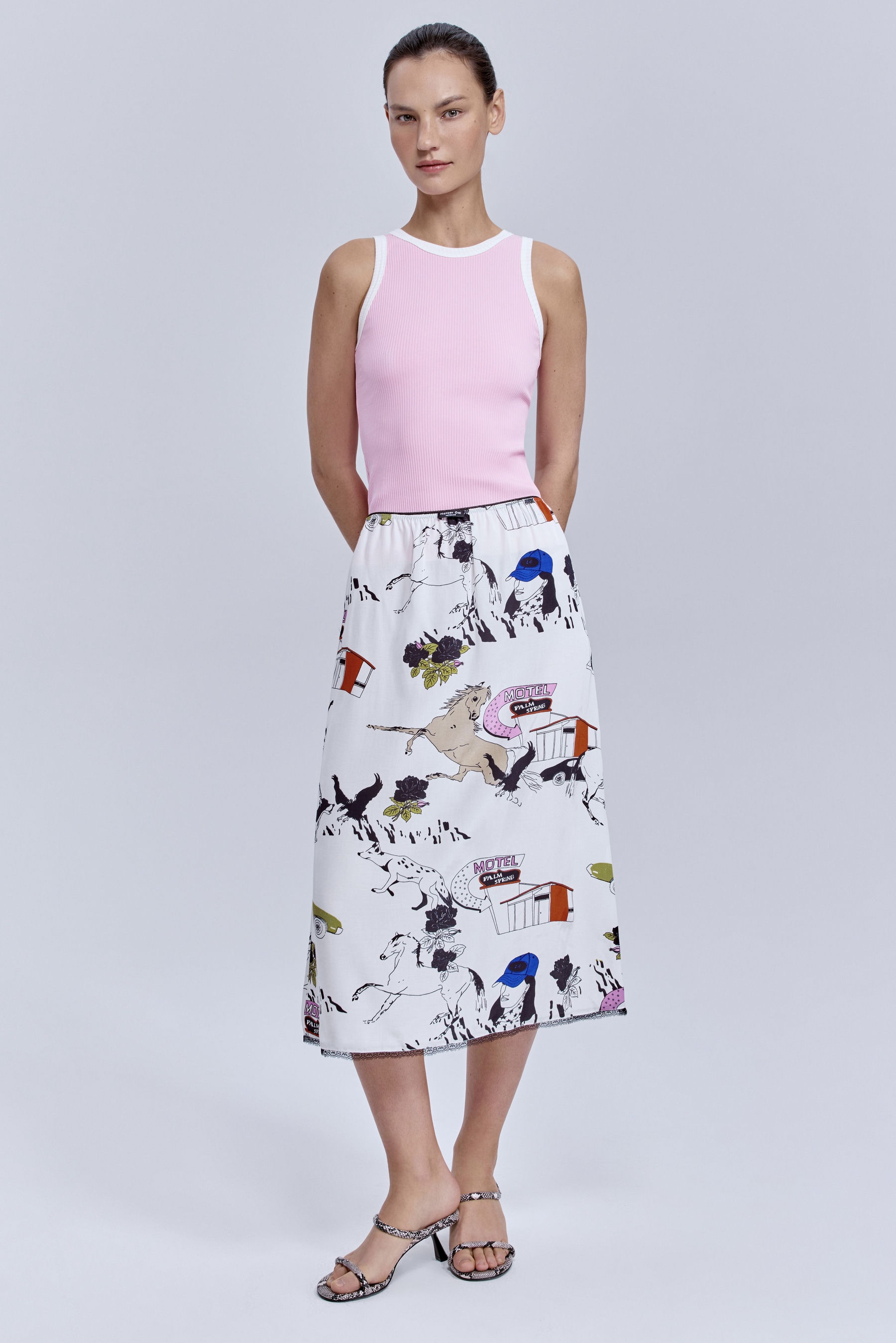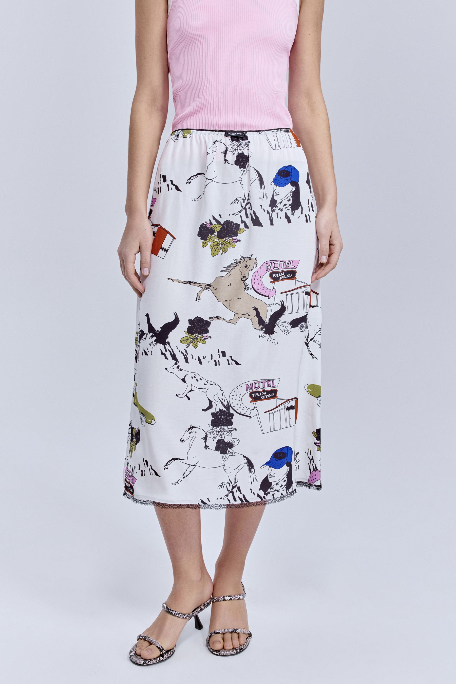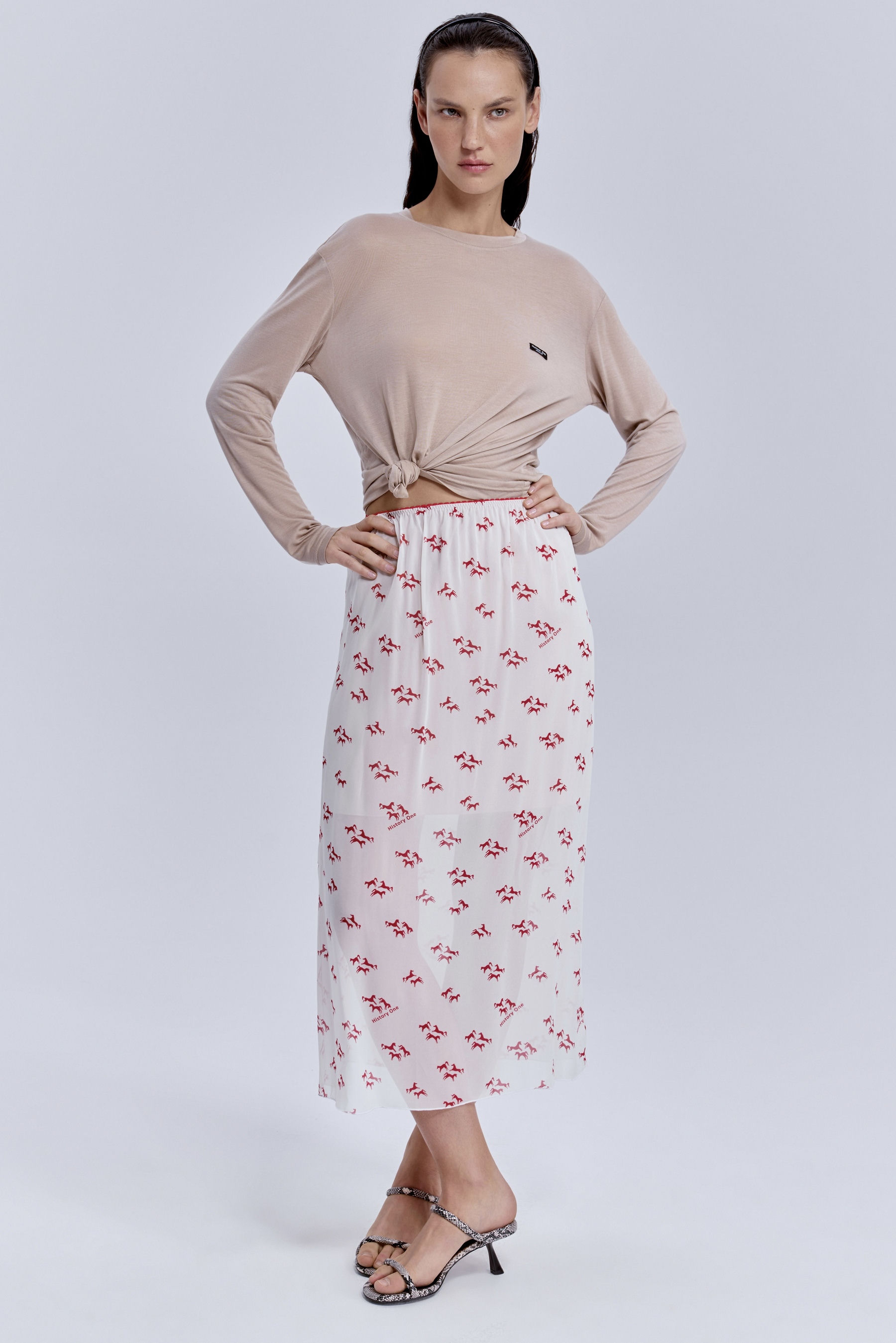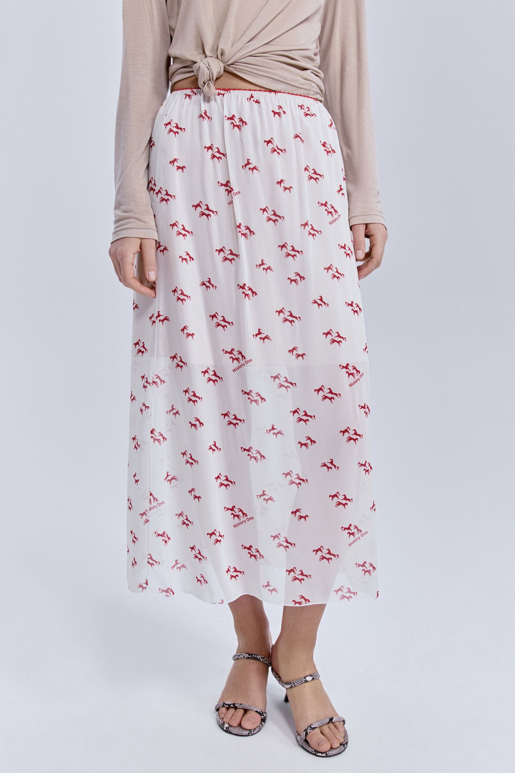 Юбка из шифона с принтом «лошадки», молочный