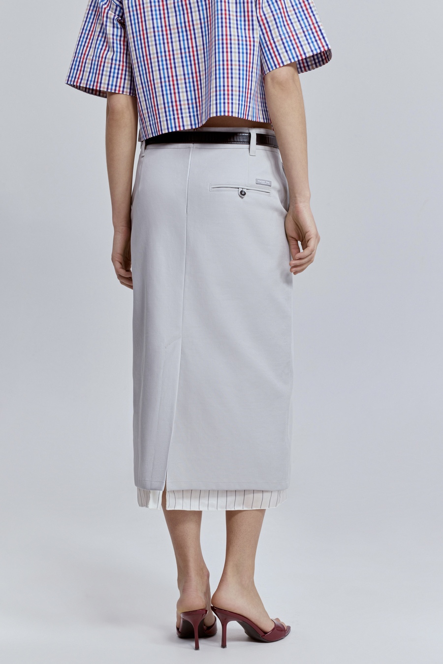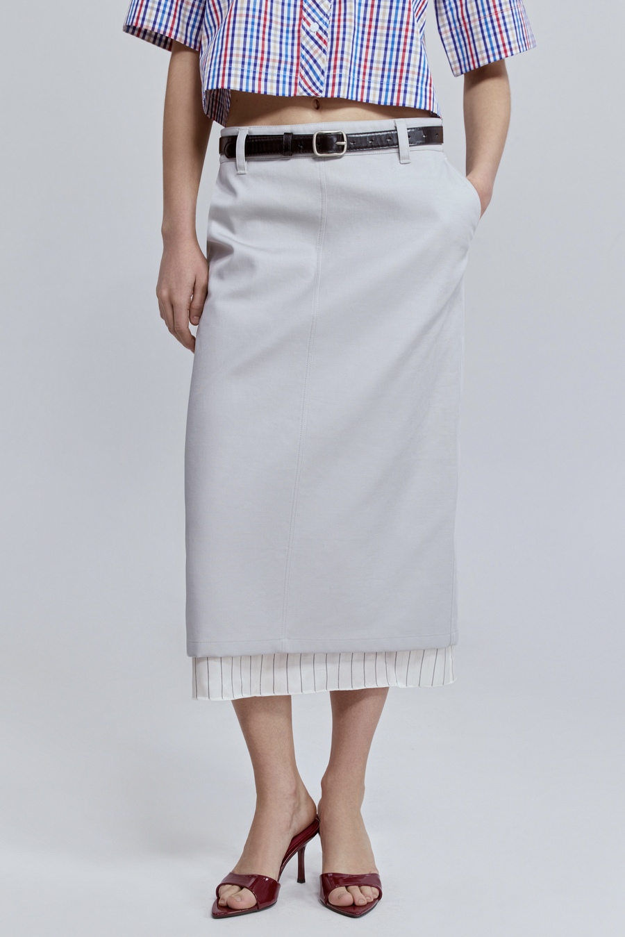 Юбка прямая с контрастной подкладкой, жемчужный