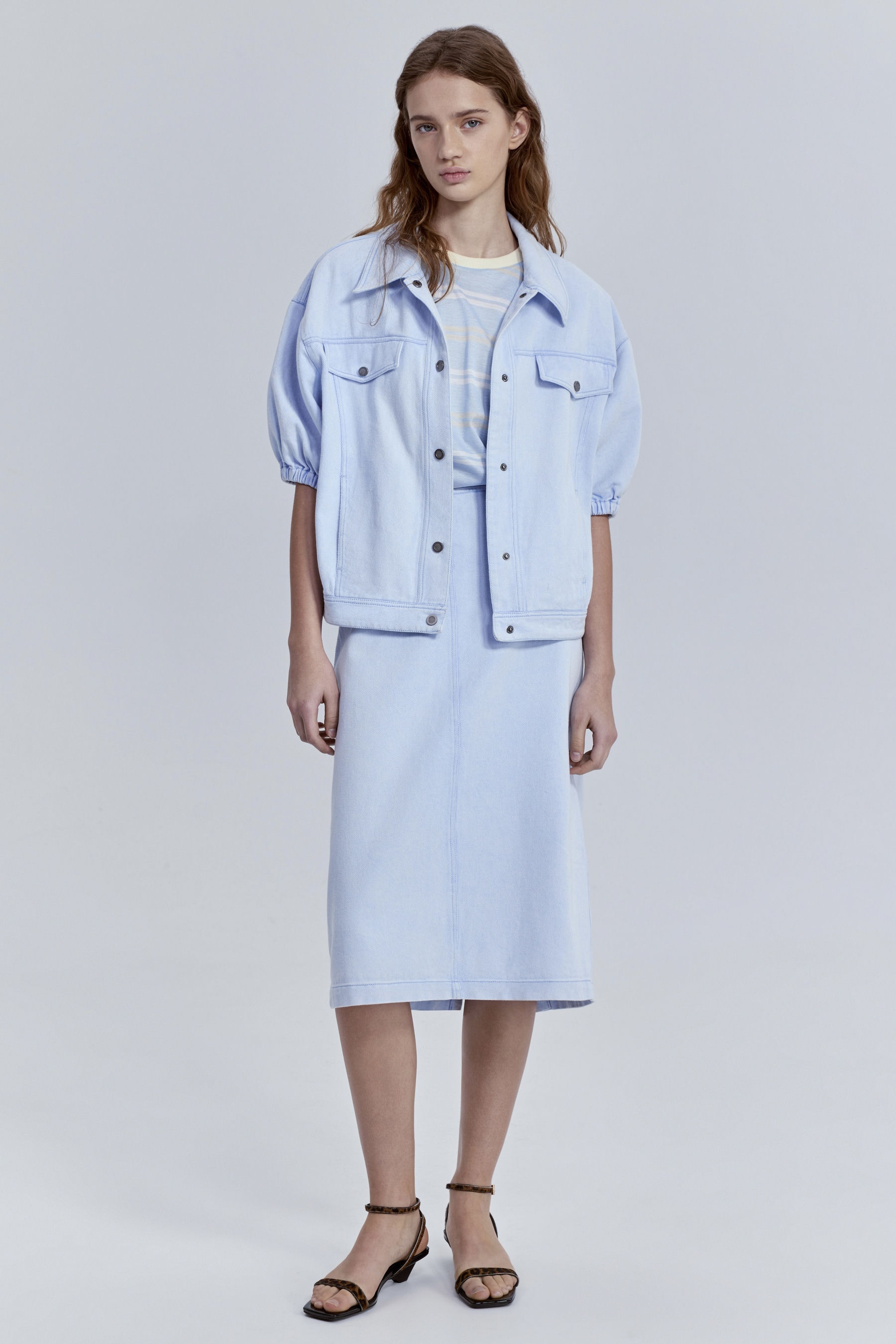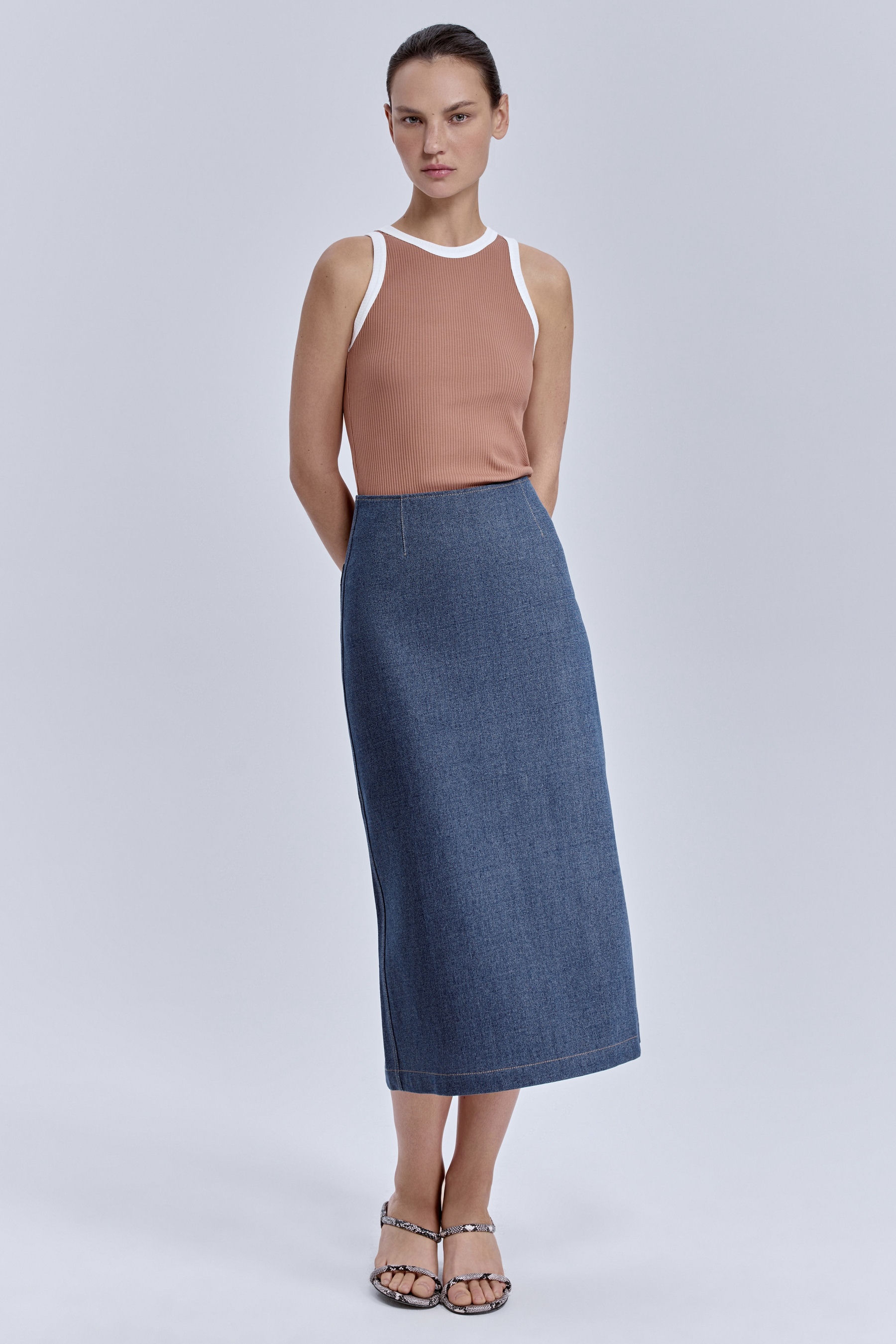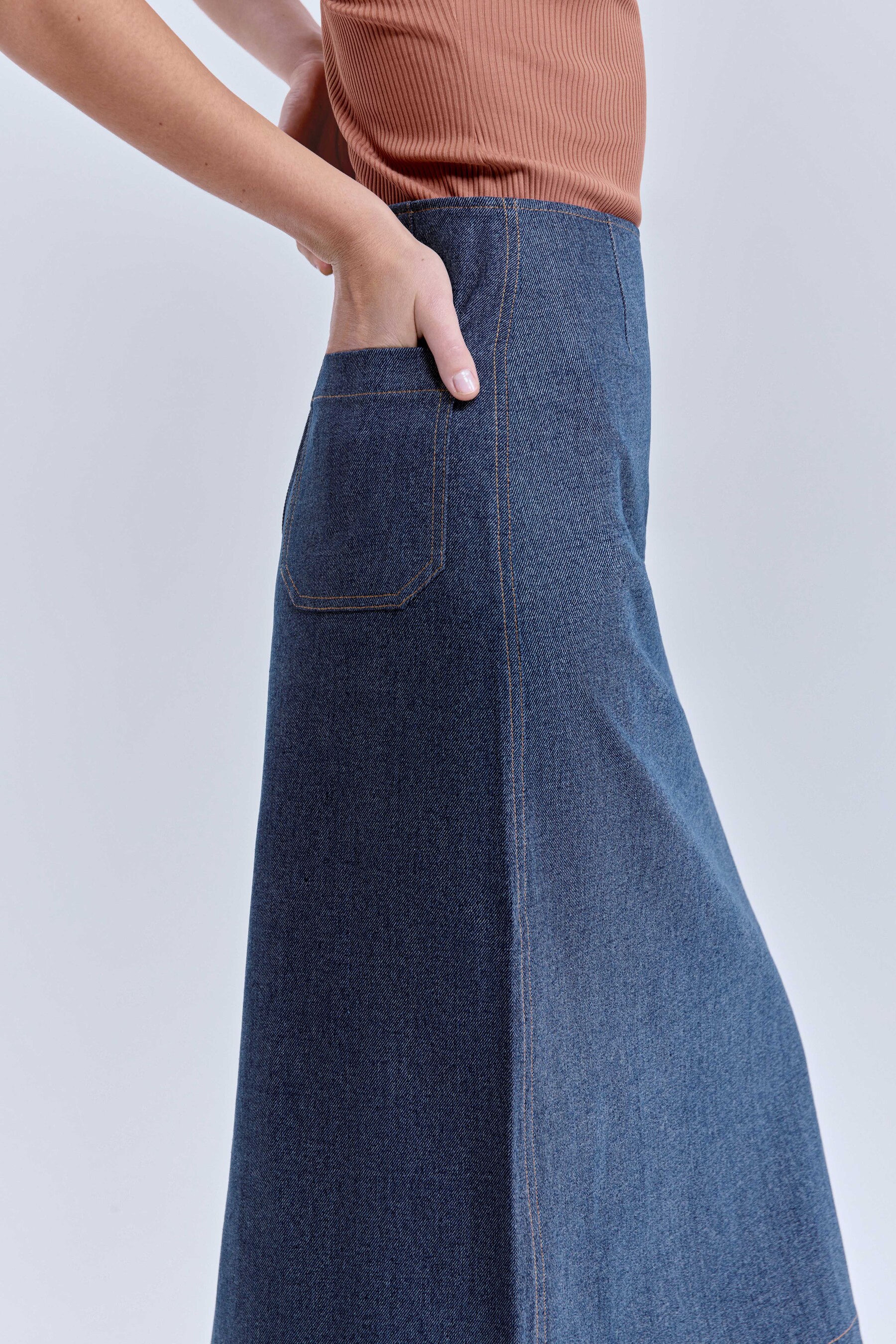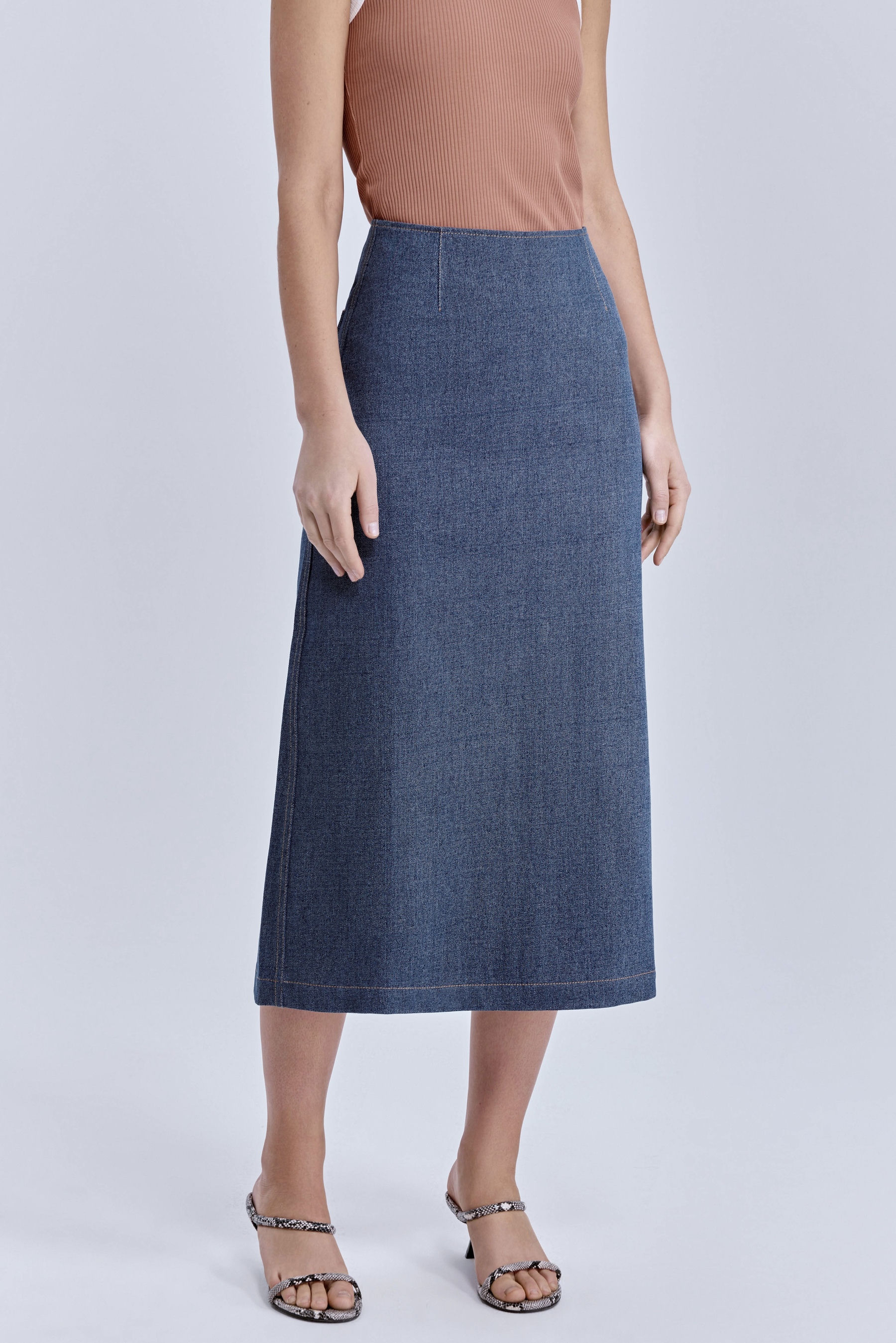Юбка-миди из варёного денима, голубой