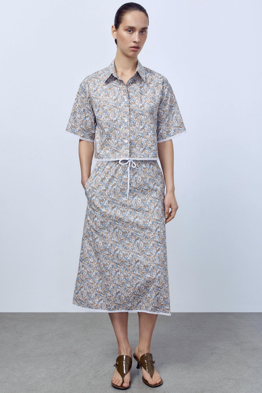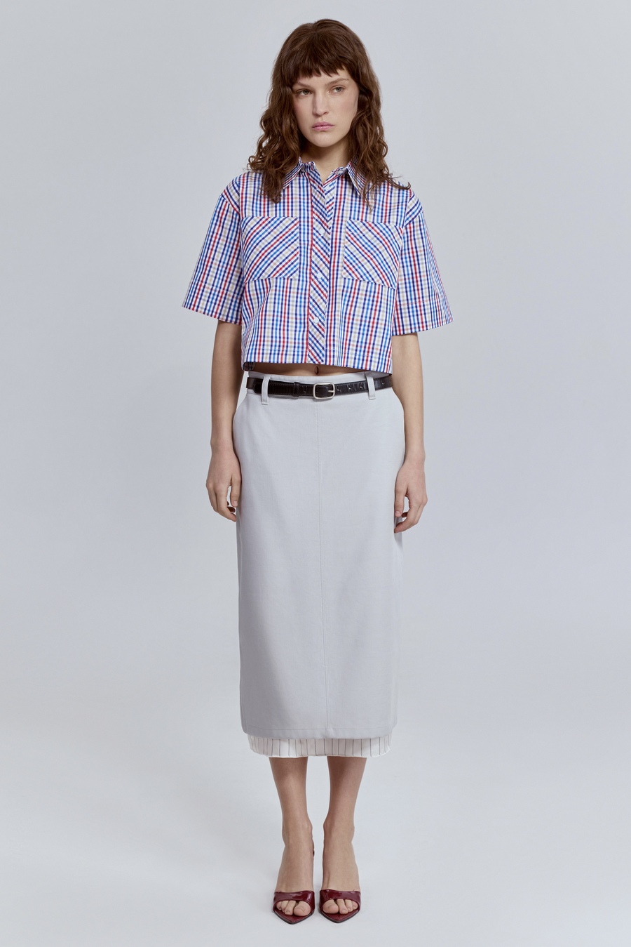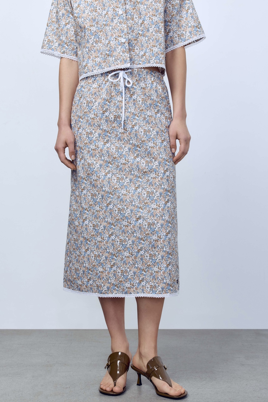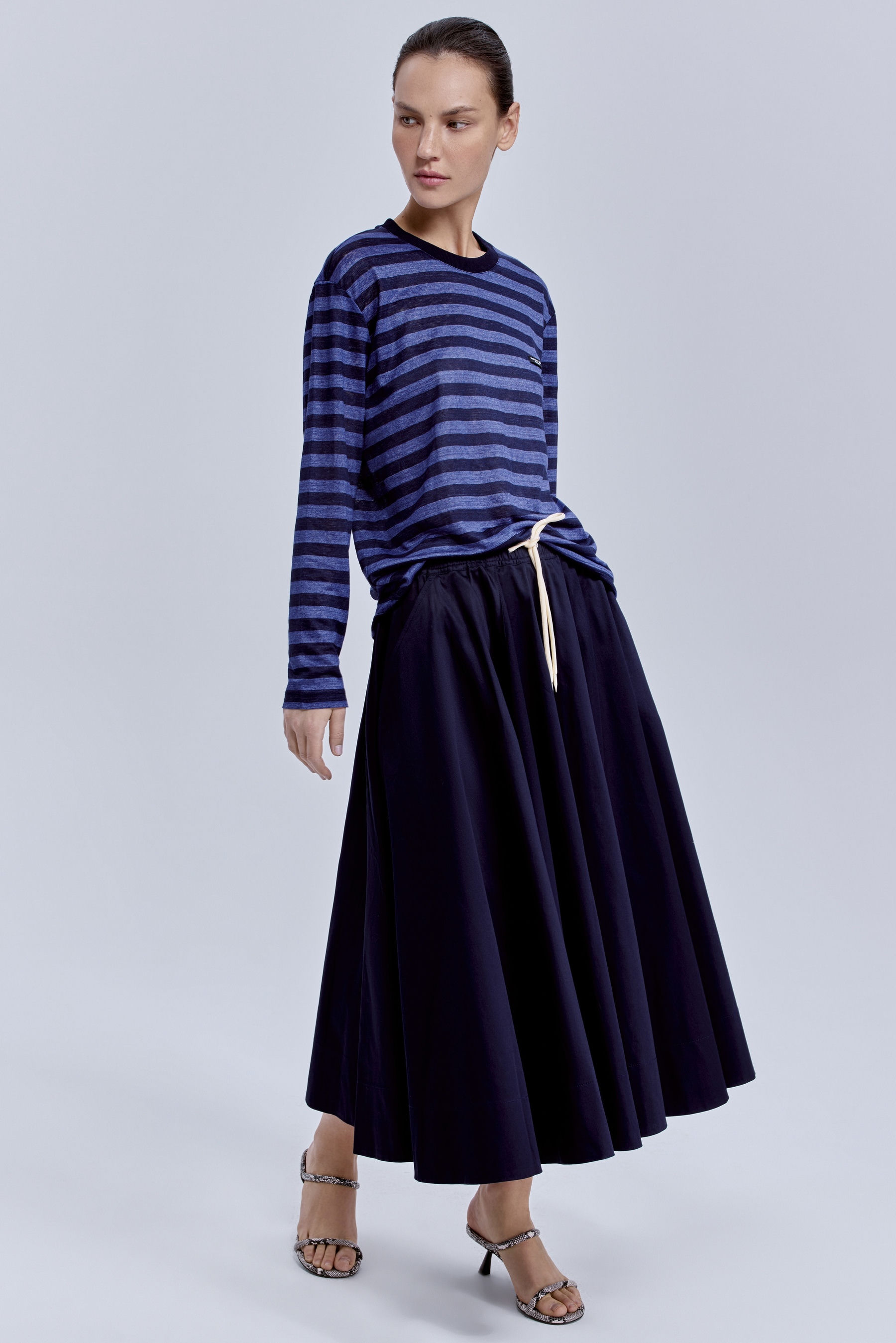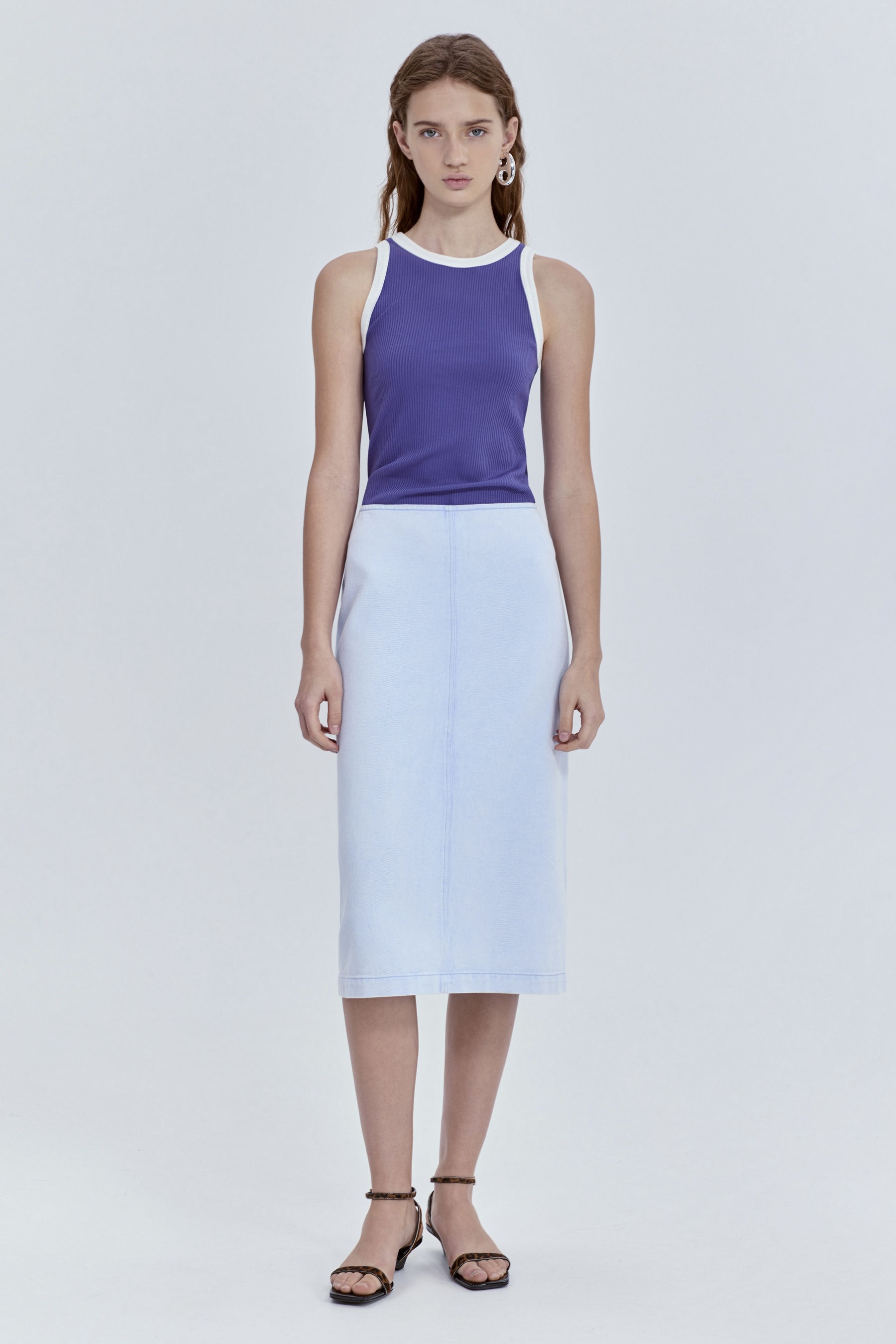 Юбка-миди из варёного денима, голубой