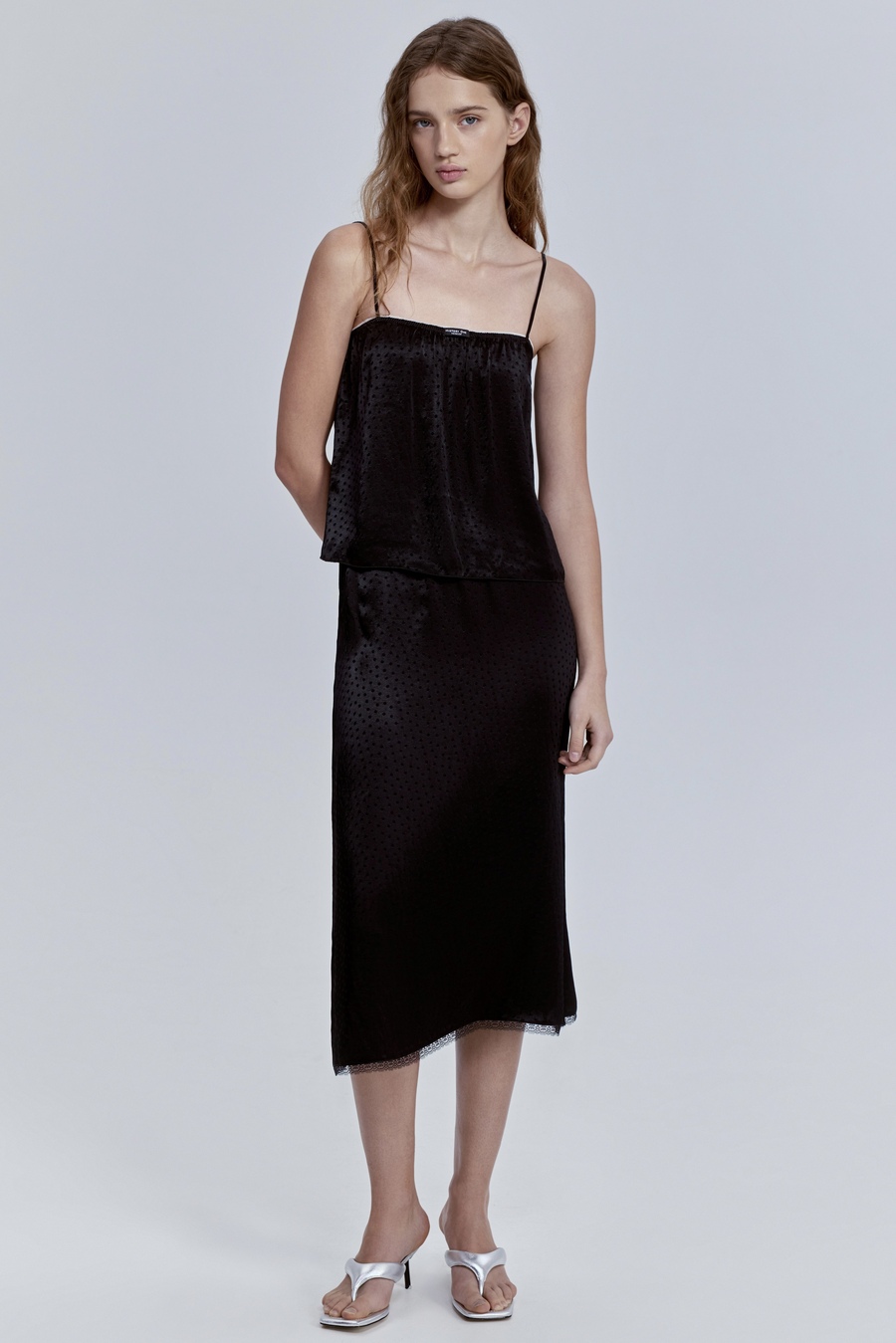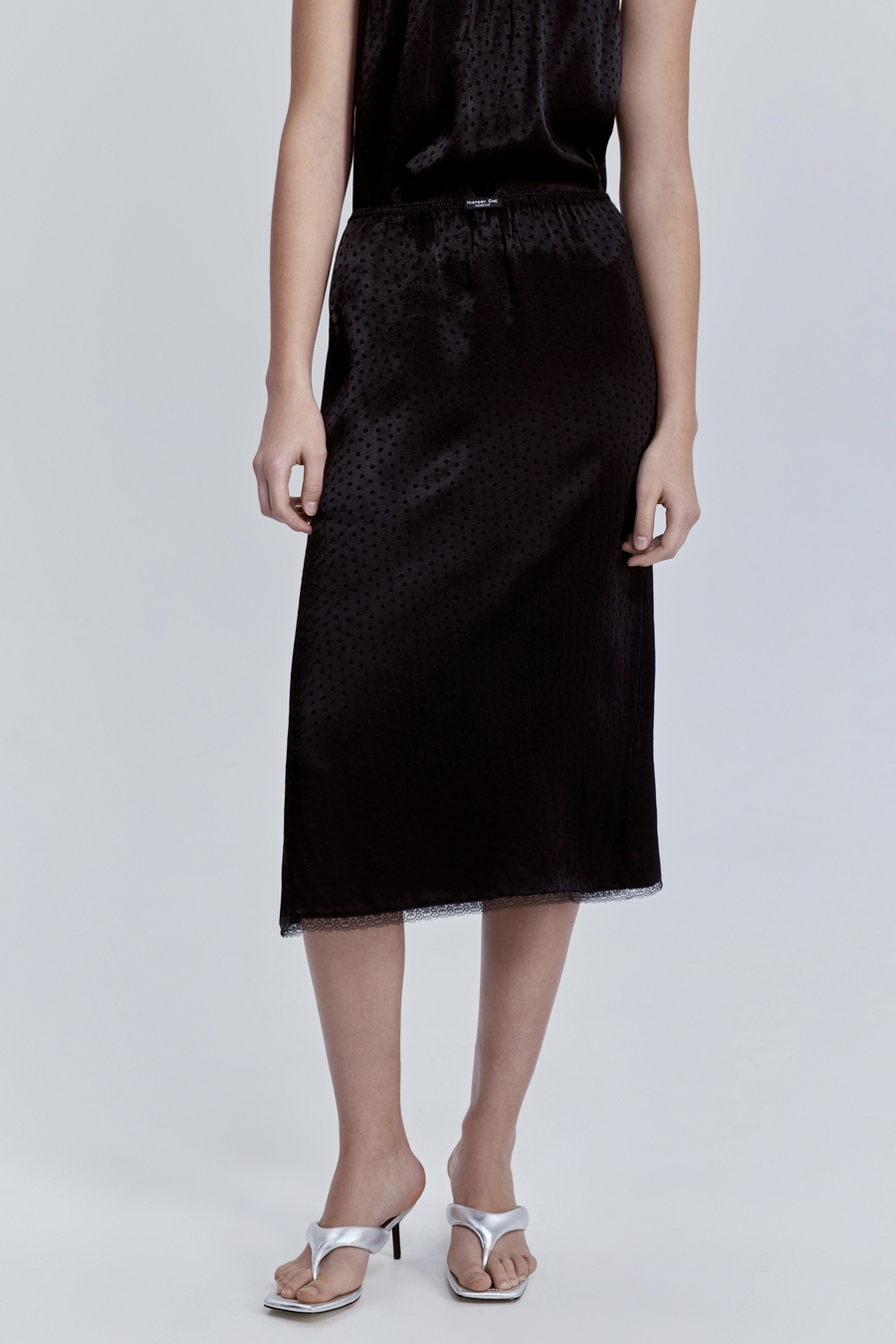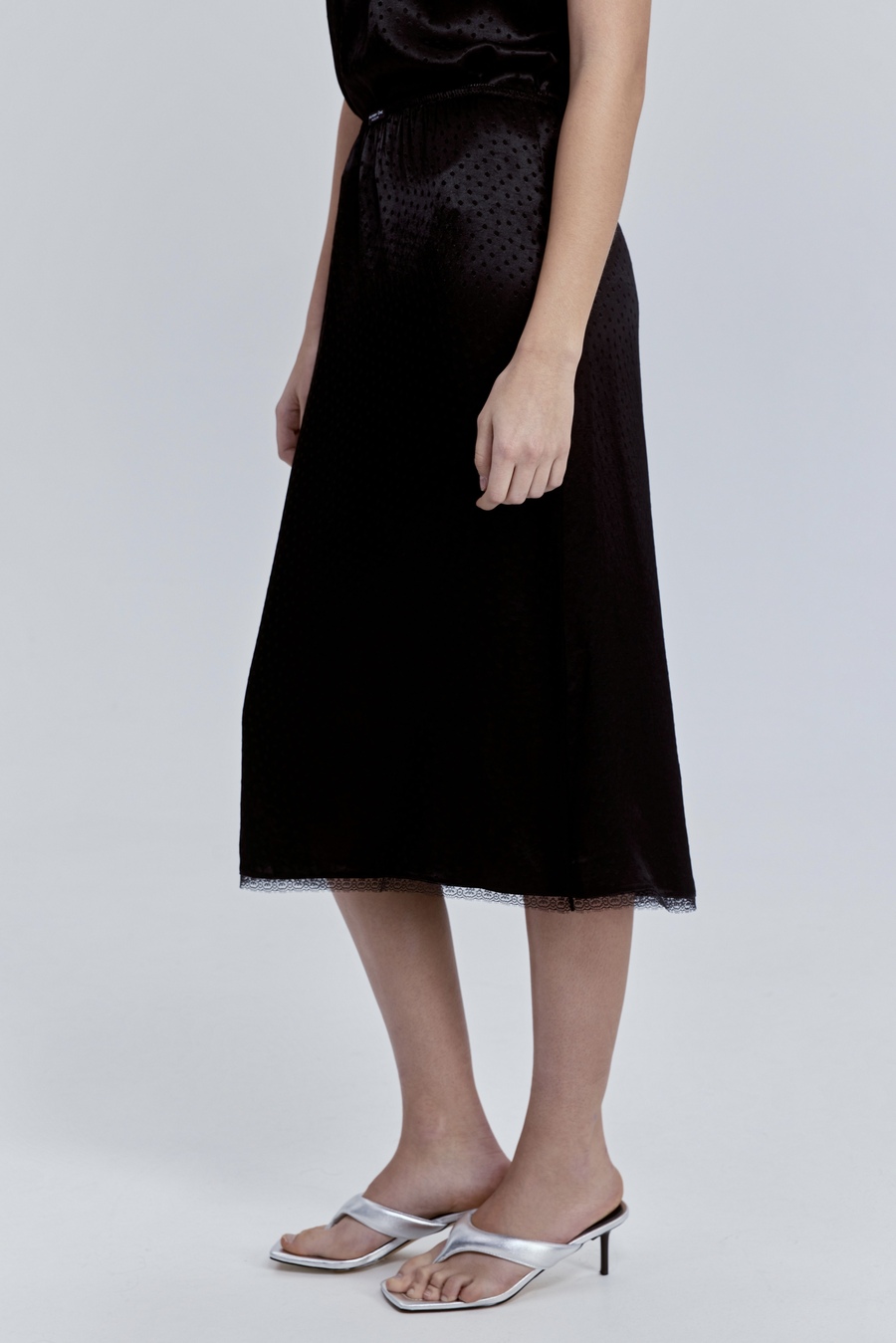 Юбка с кружевом из атласа, чёрный