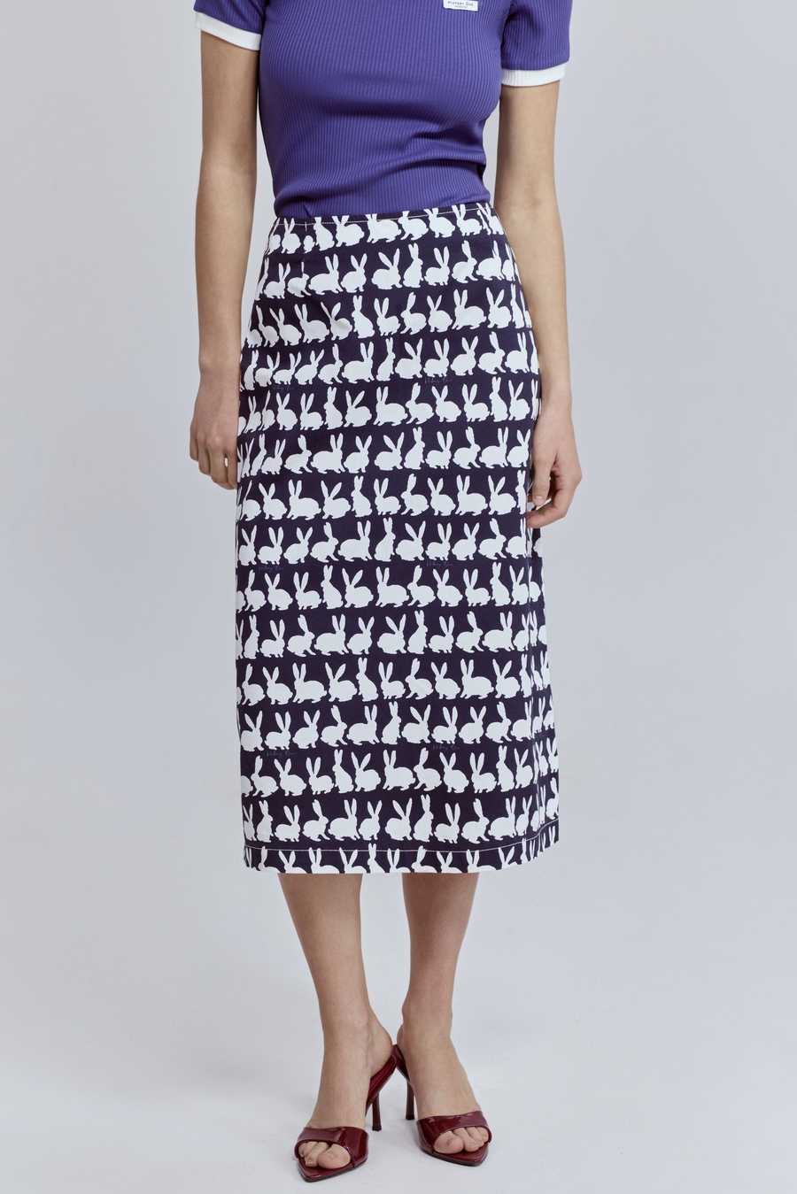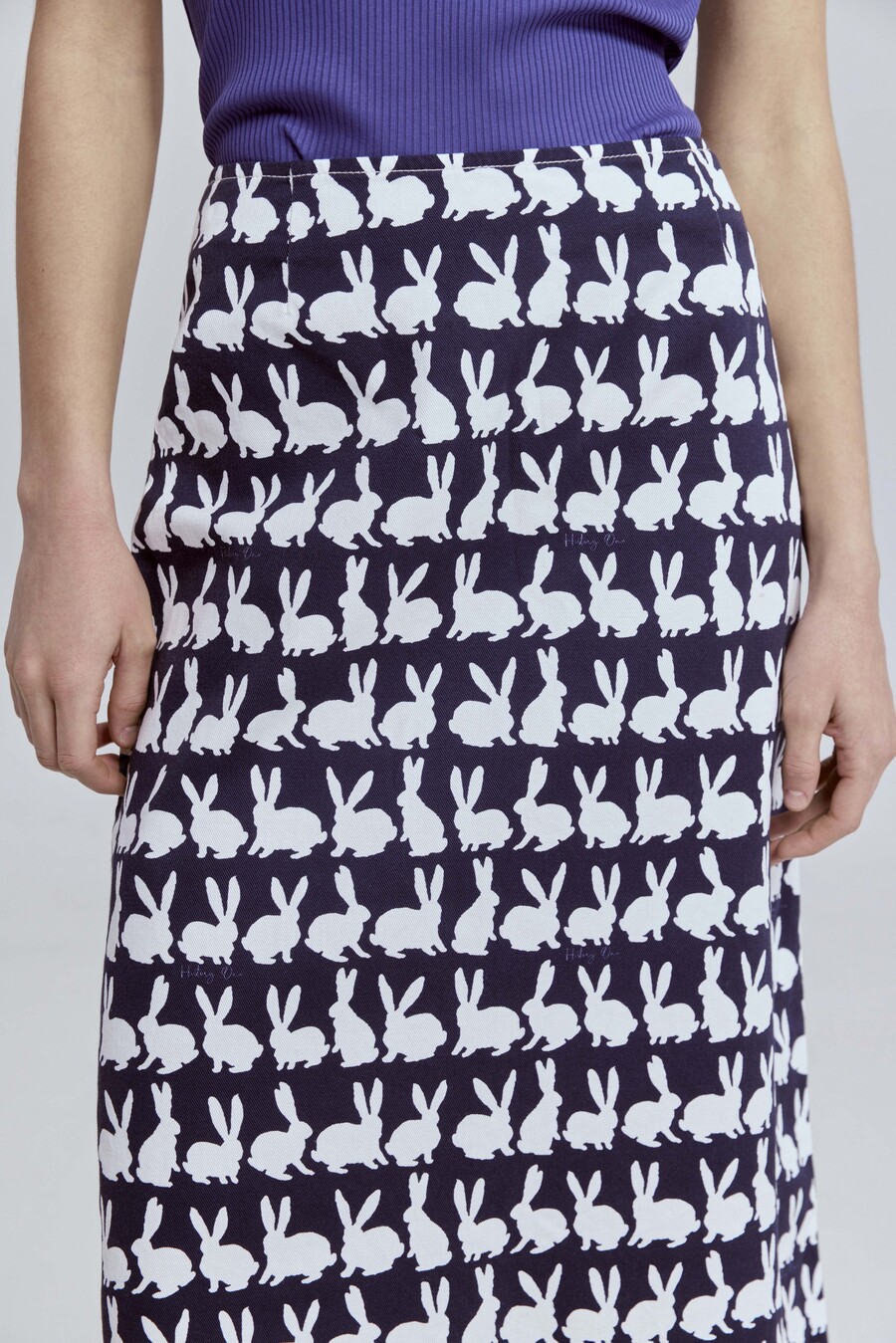 Юбка прямая из лёгкого денима с принтом «кролики», синий