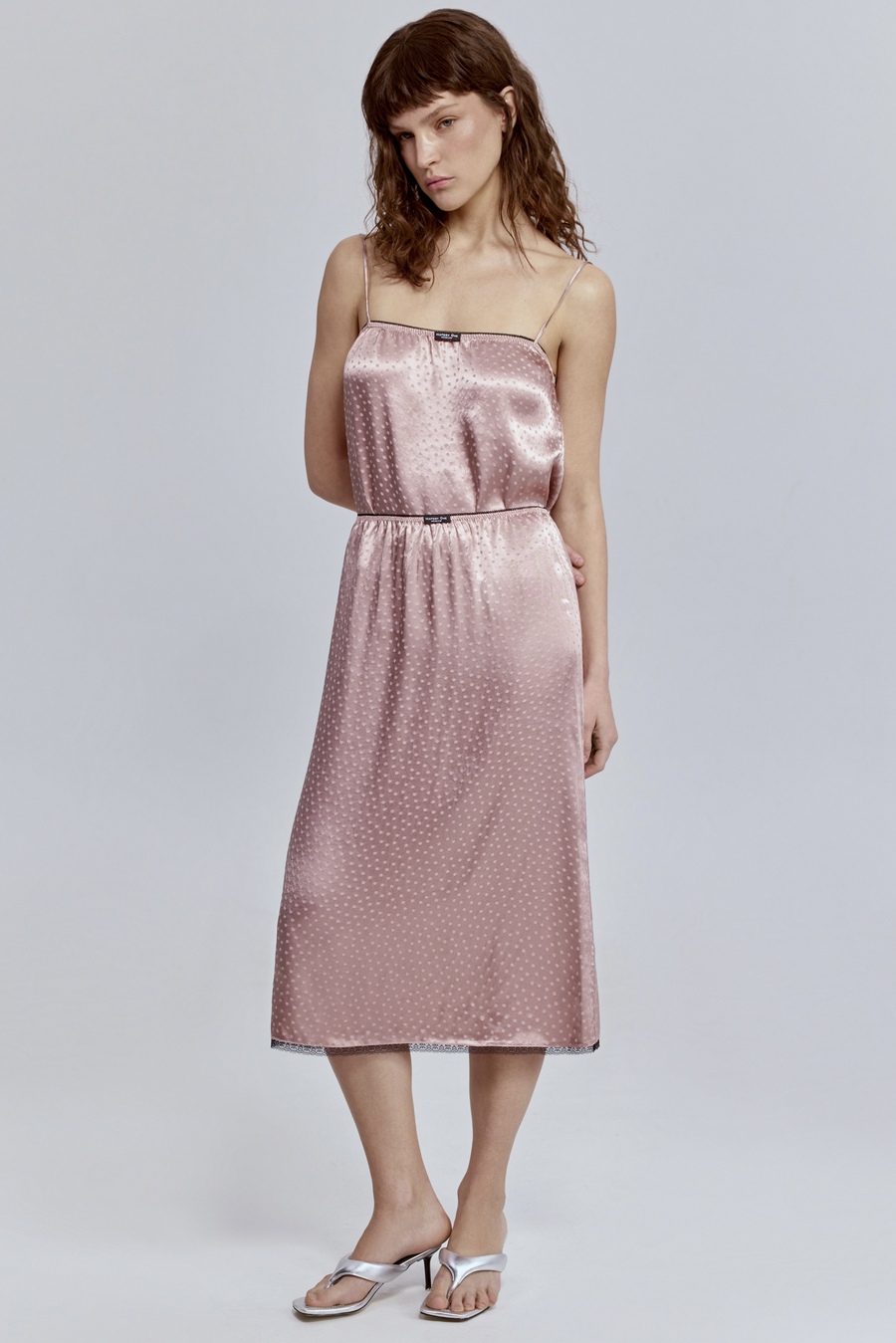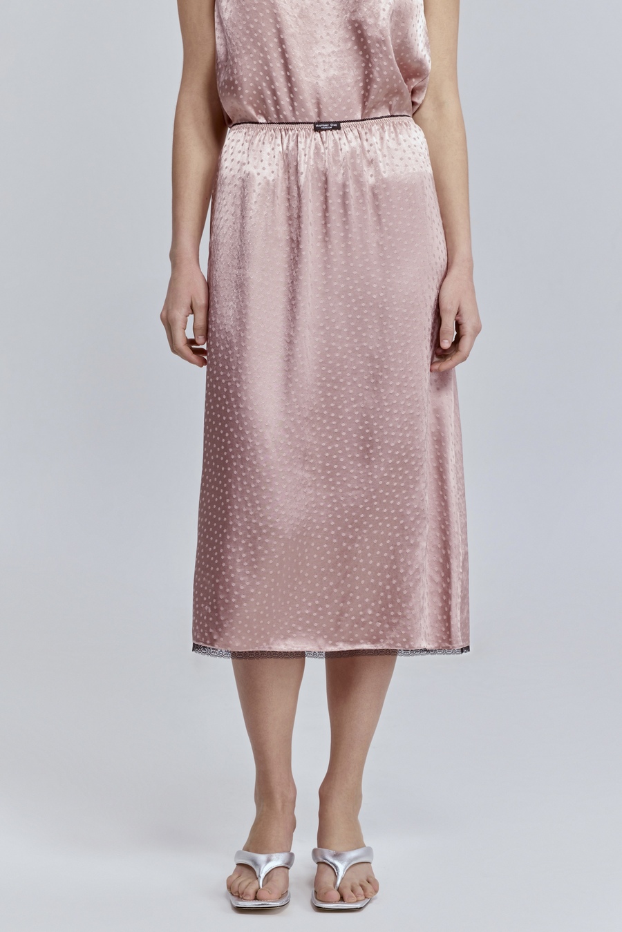 Юбка с кружевом из атласа, пудровый