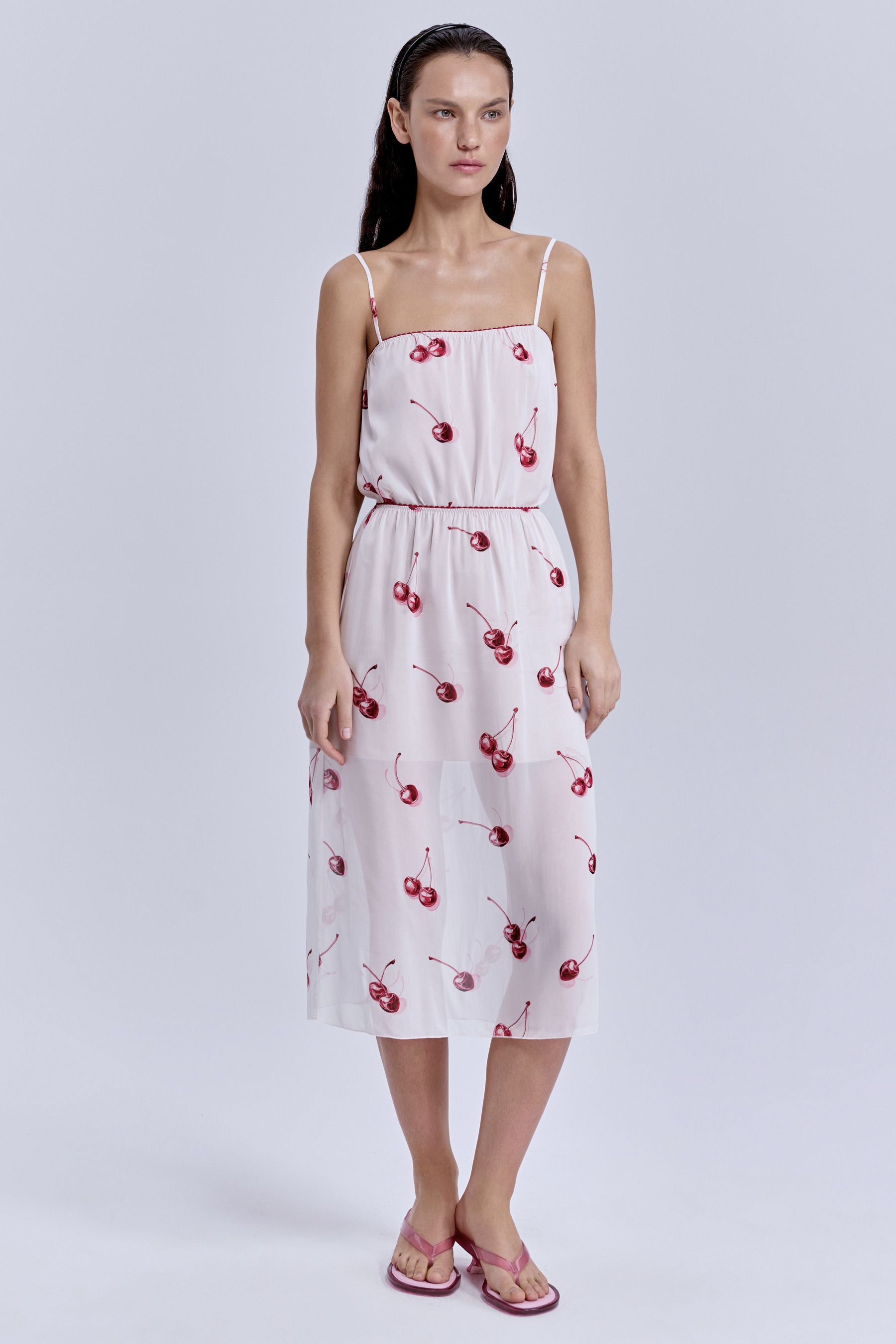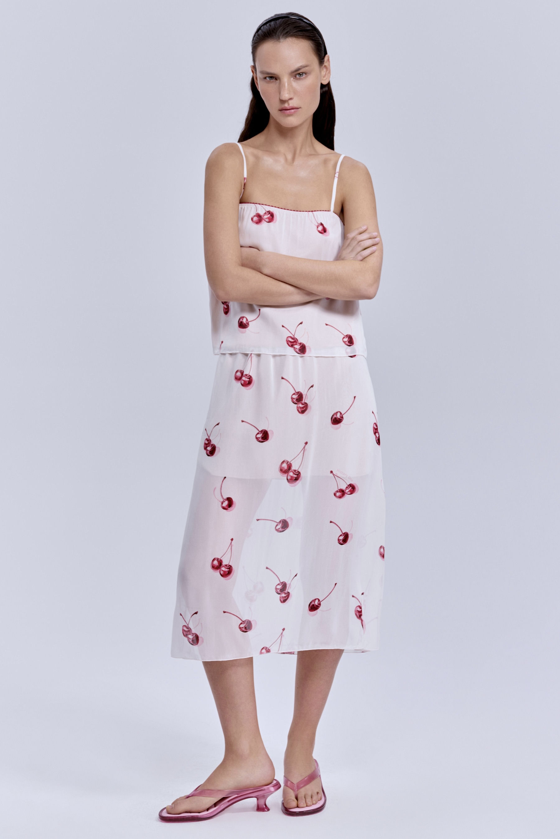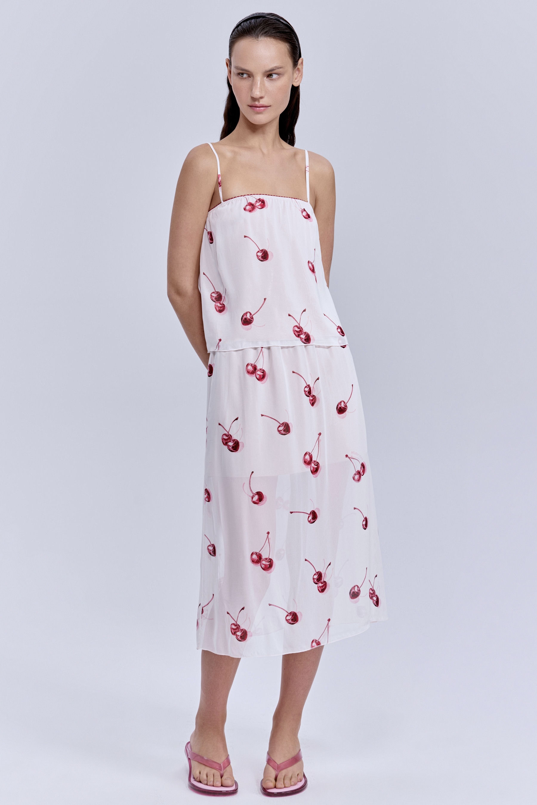 Юбка из шифона с принтом «вишни», молочный