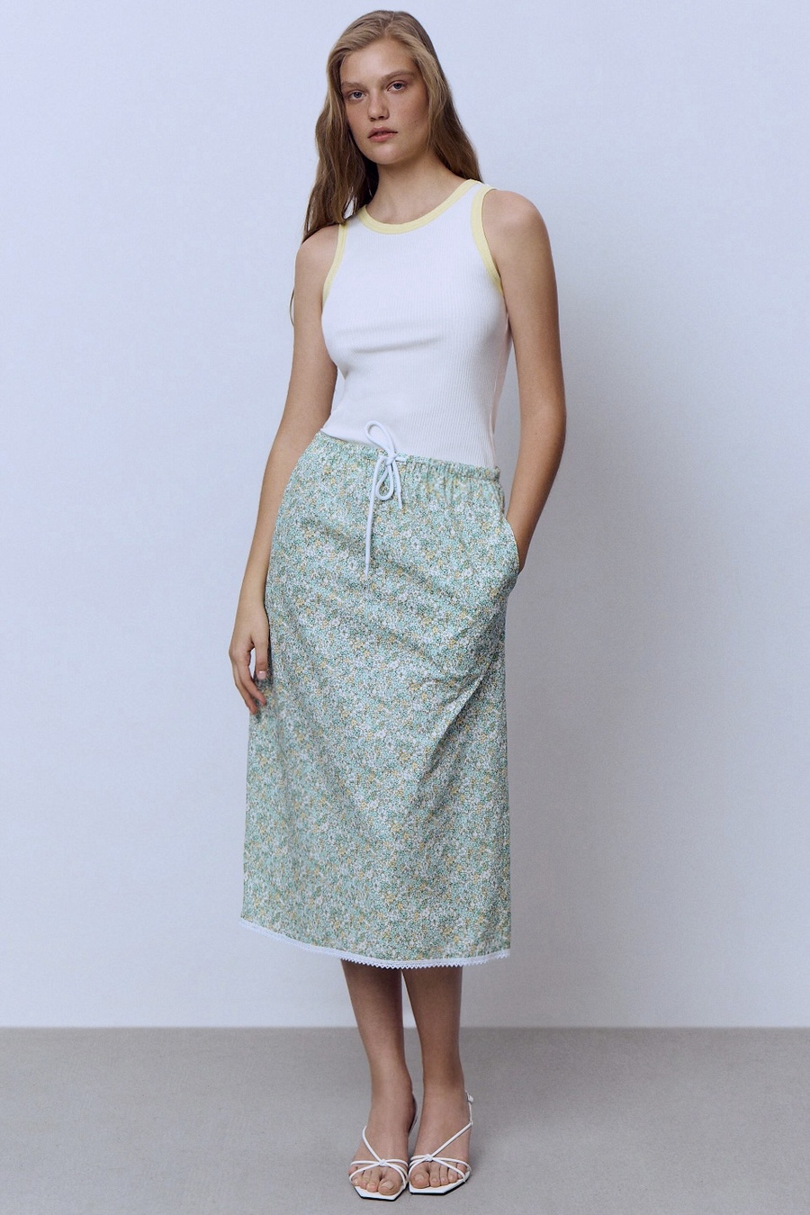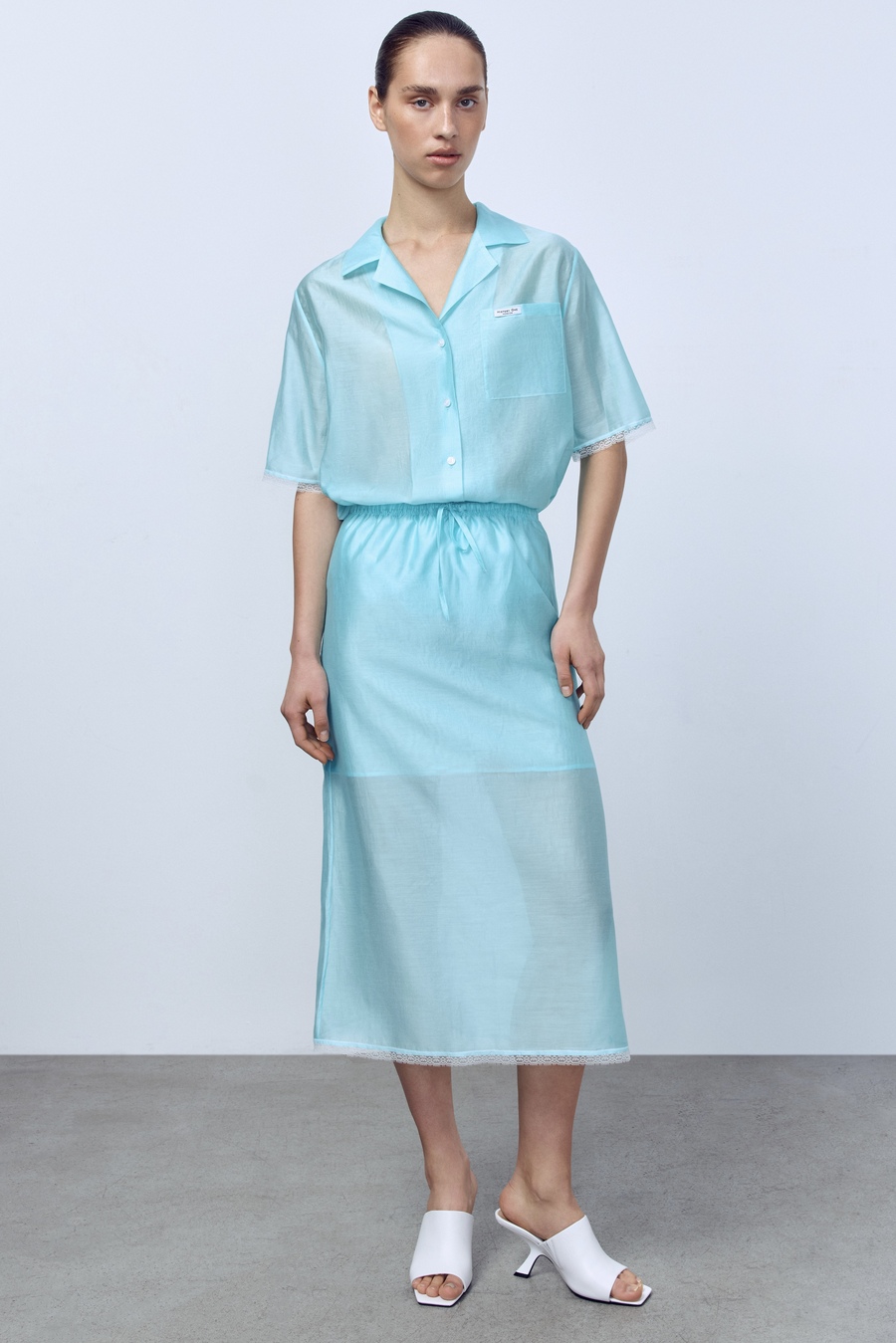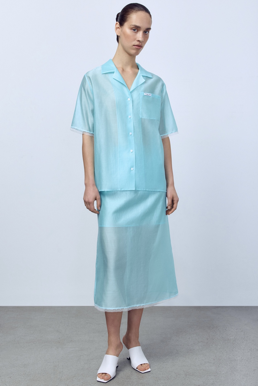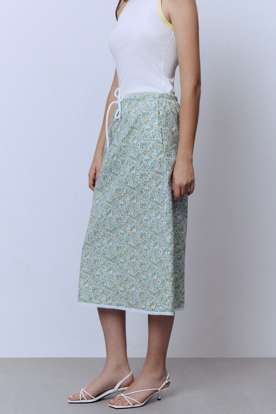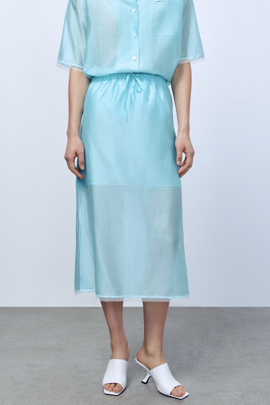 Юбка из батистовой вуали с кружевом, мятный