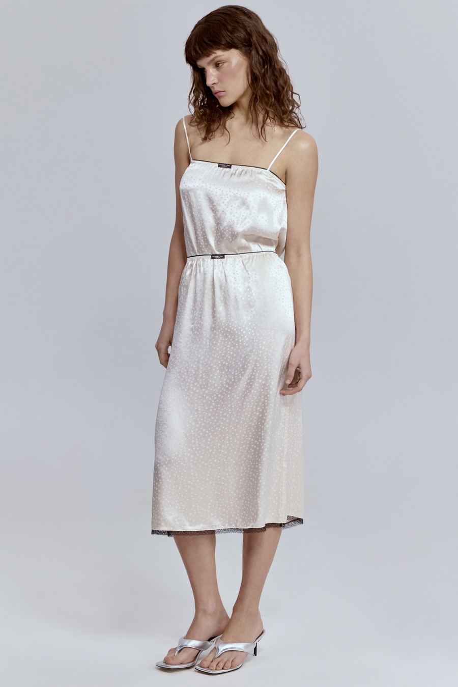Юбка с кружевом из атласа, молочный
