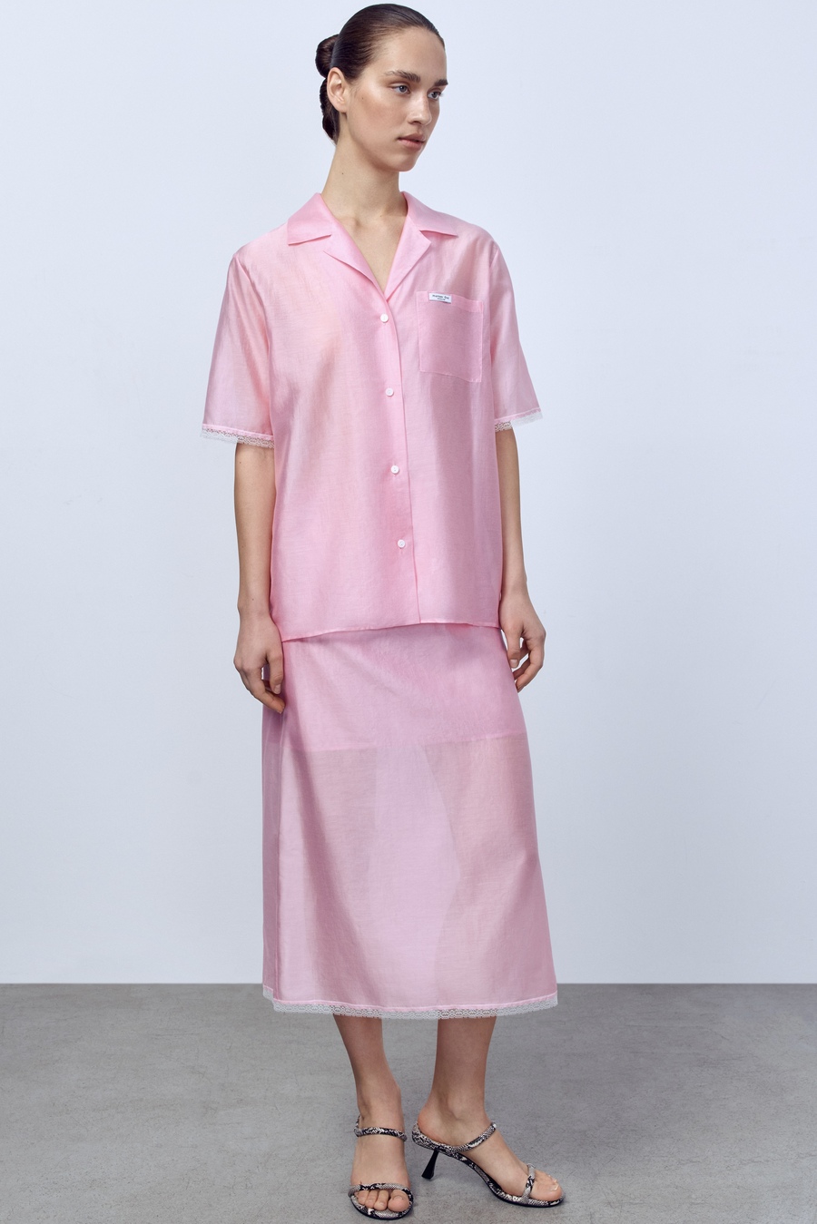 Юбка из батистовой вуали с кружевом, розовый