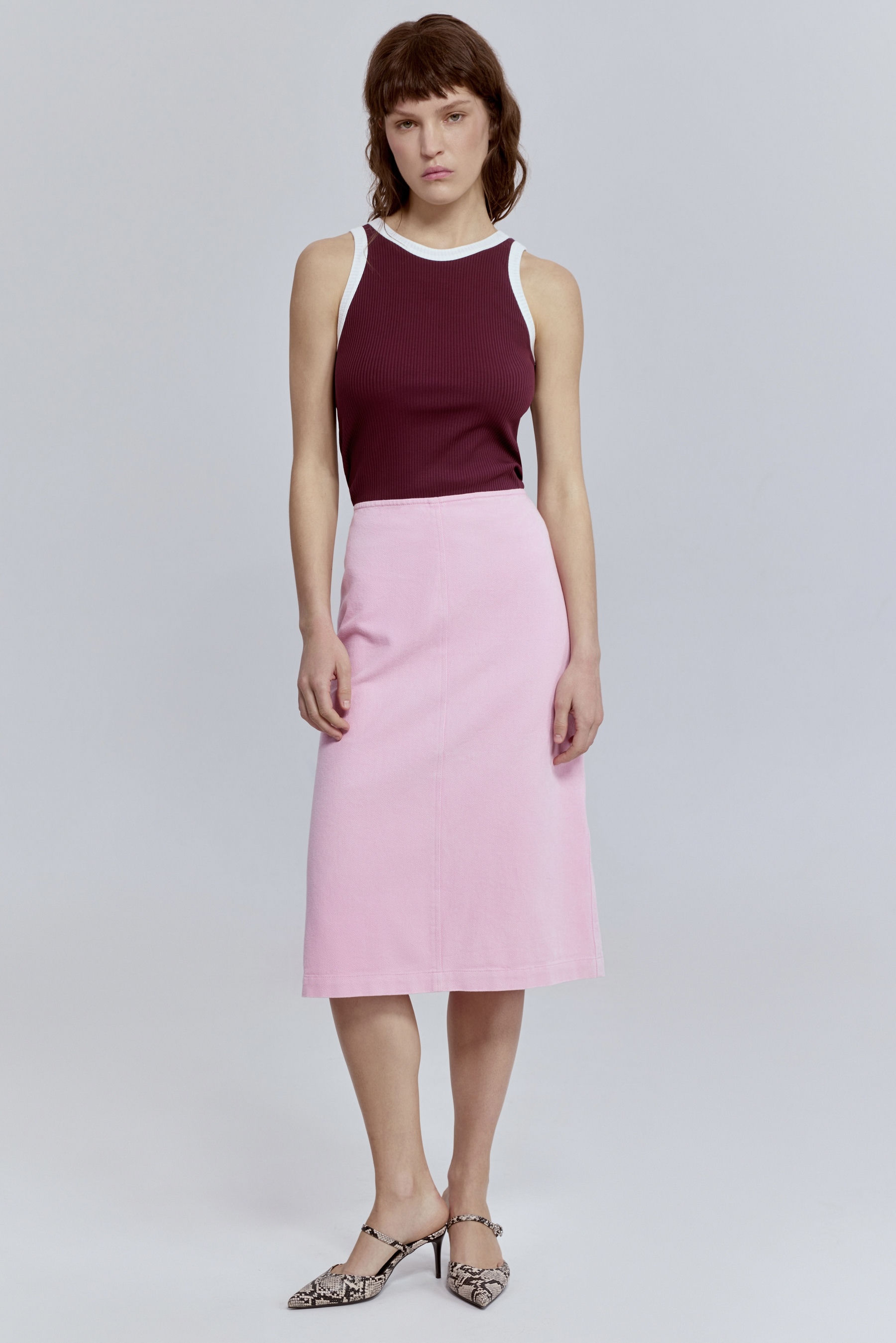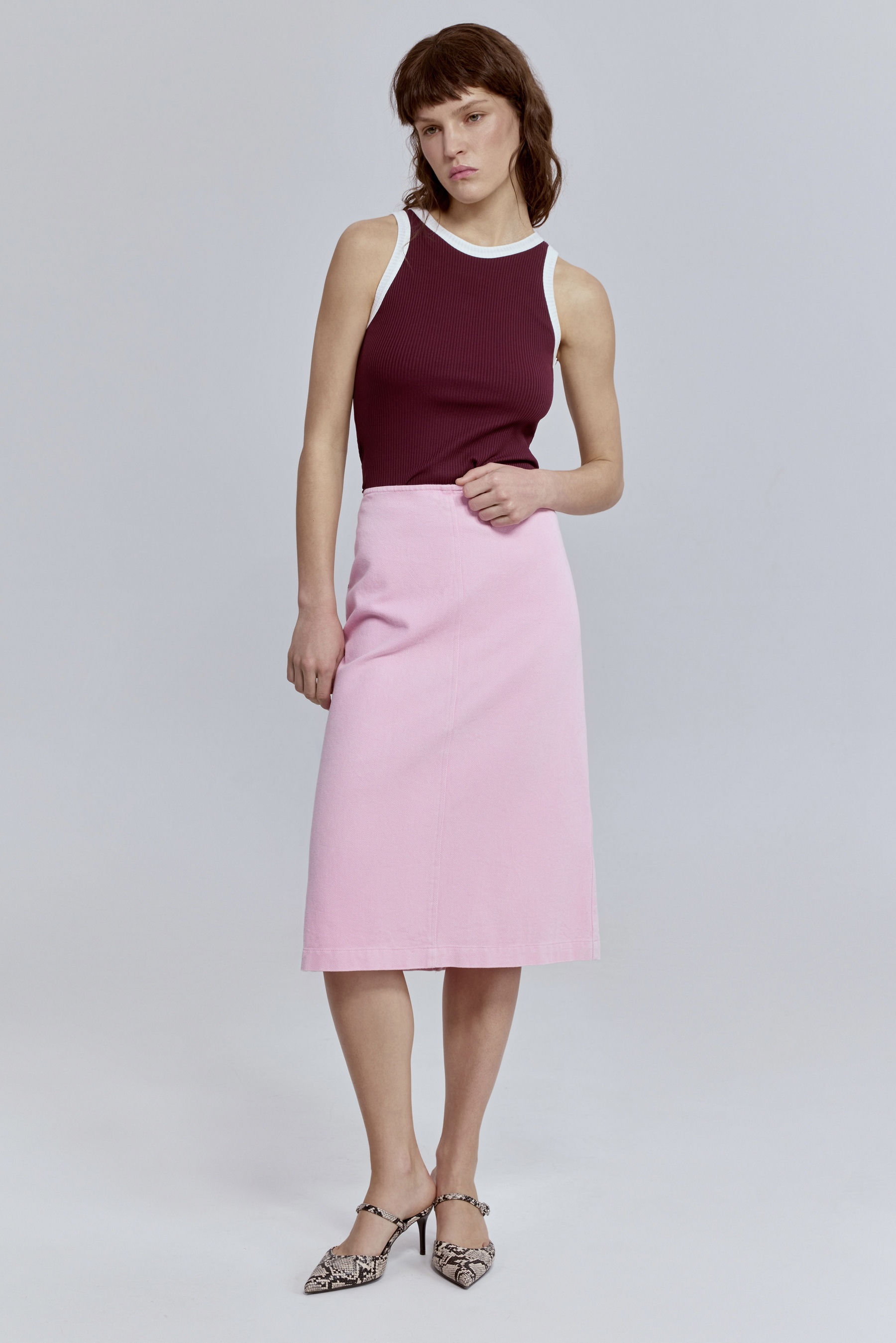 Юбка-миди из варёного денима, розовый