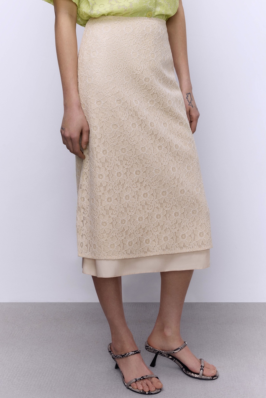 Юбка А-лайн с кружевом, шампань