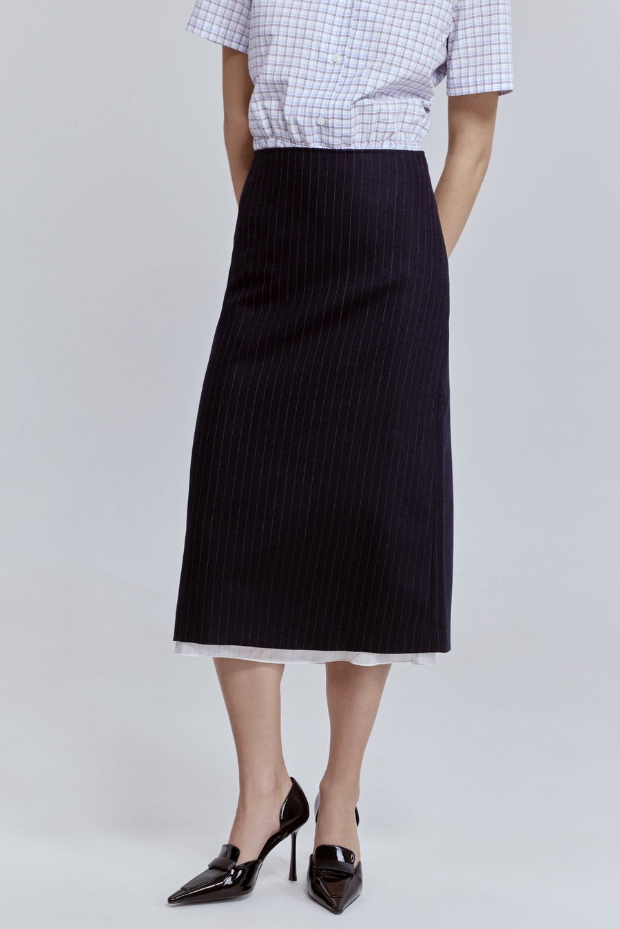 Юбка в полоску из шерсти с контрастной подкладкой, синий