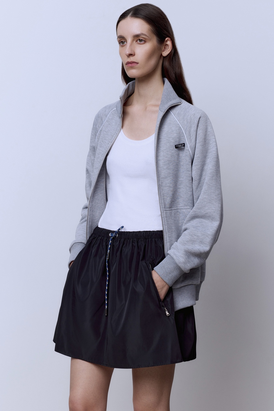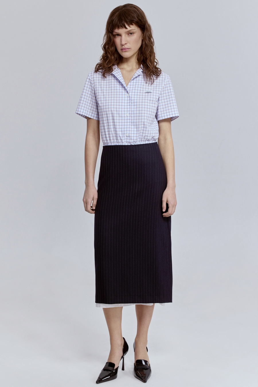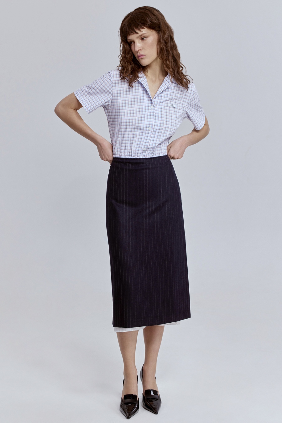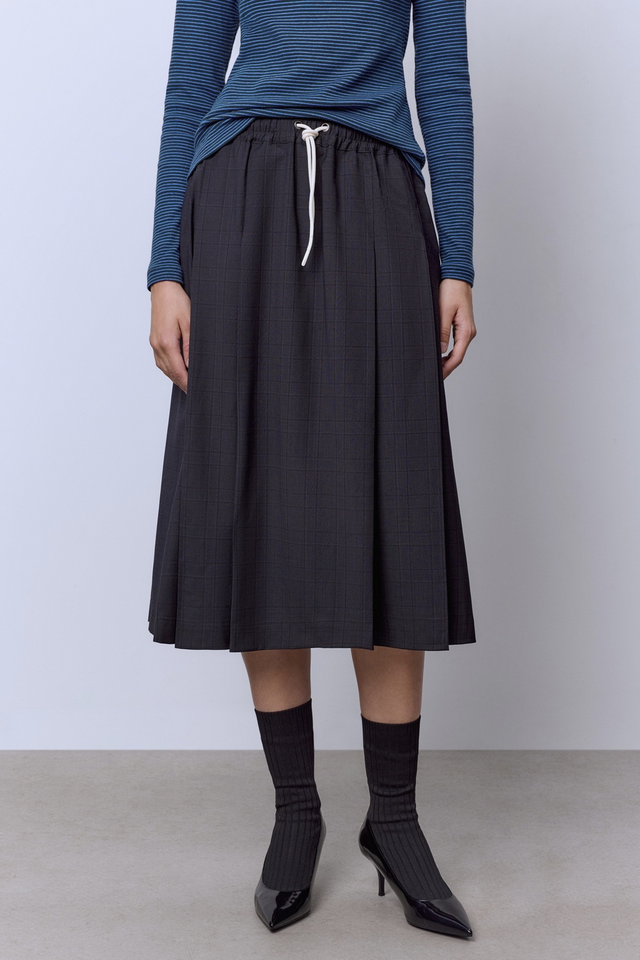 Юбка из премиальной шерсти со складками, тёмно-серый
