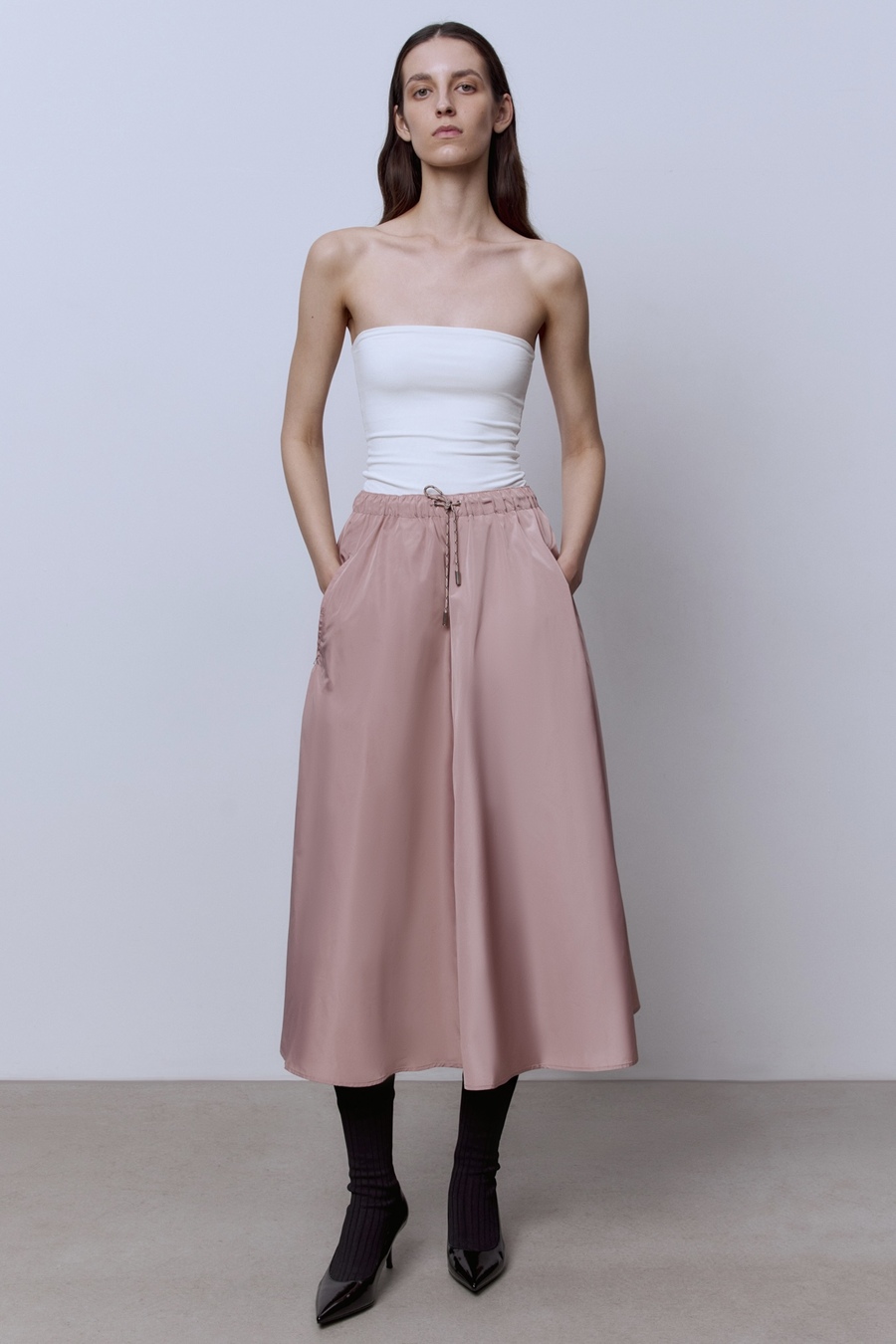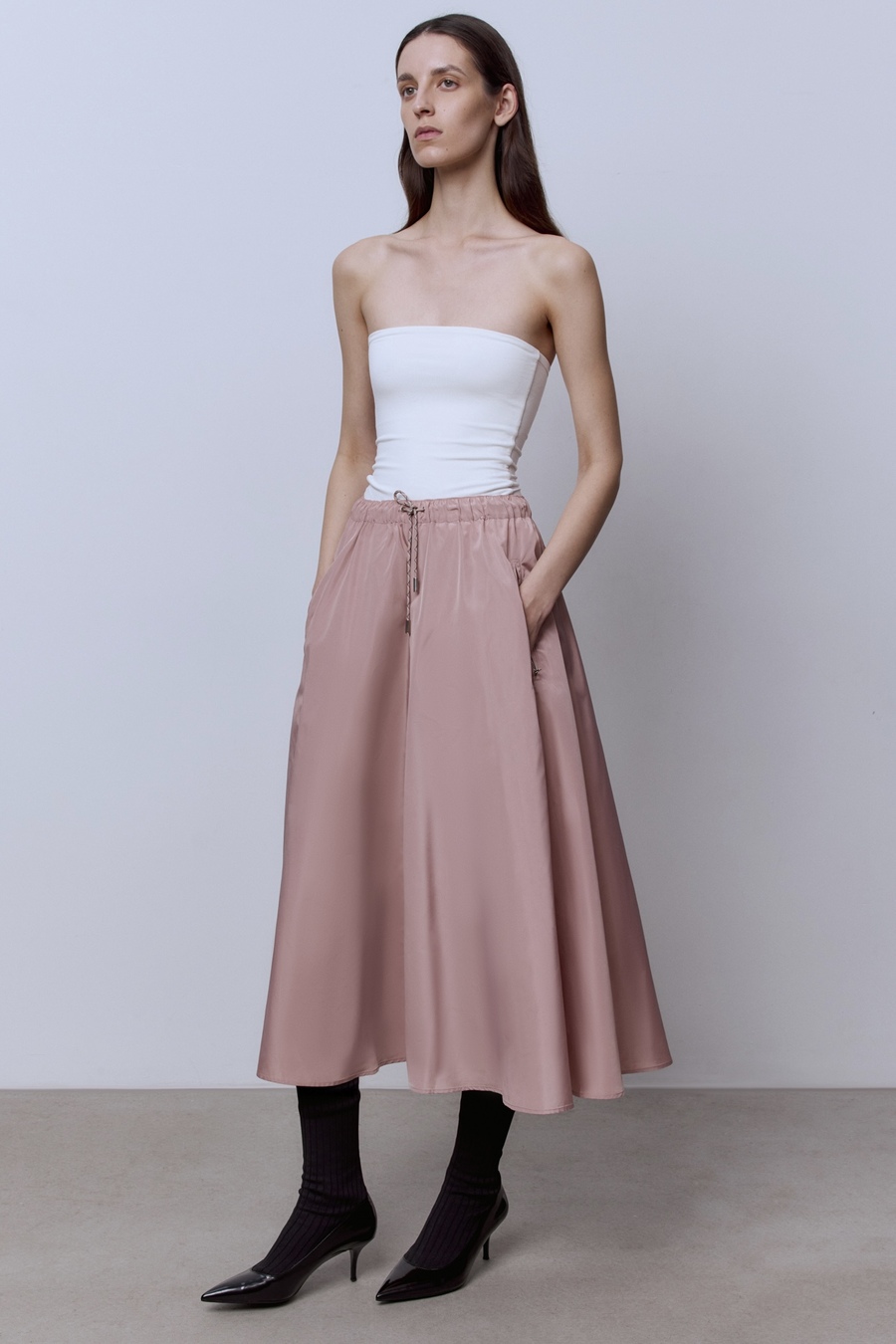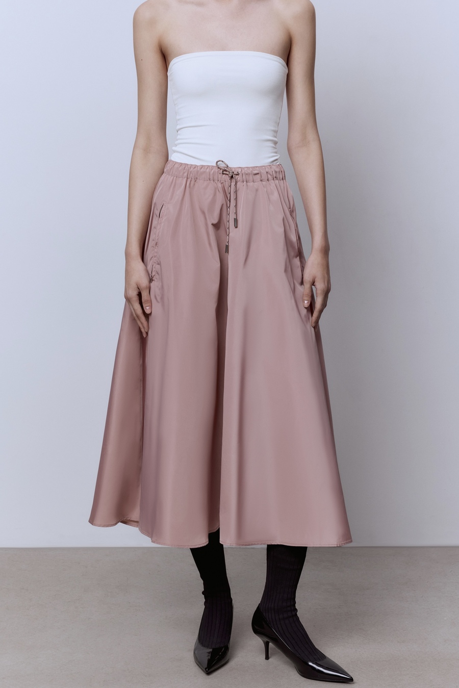 Юбка-солнце на кулиске из нейлона, пудровый