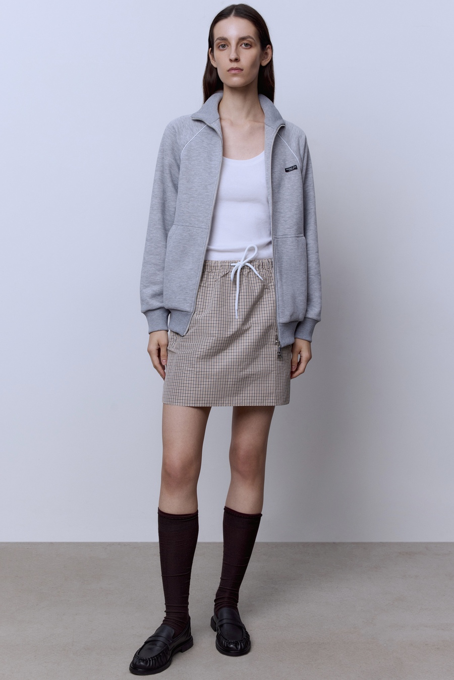 Юбка-мини в клетку из нейлона, бежевый-серый-белый