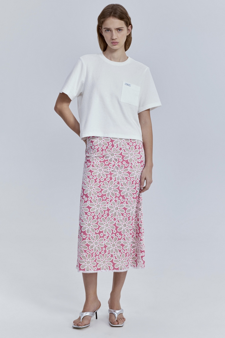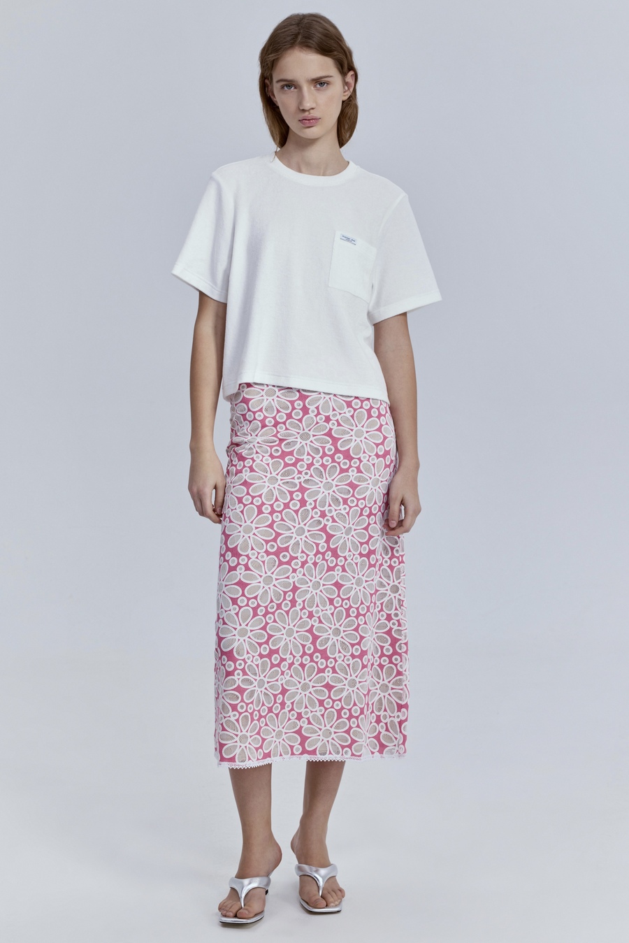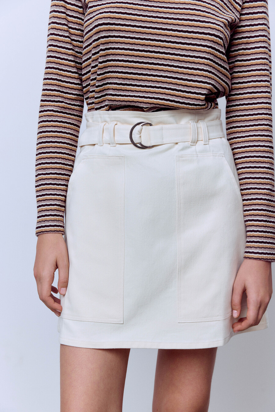 Юбка из денима с эффектом бархата, молочный