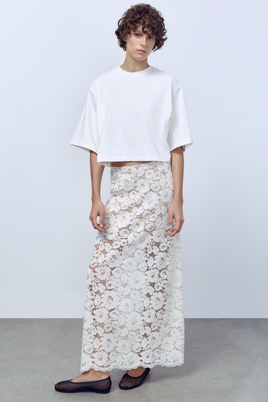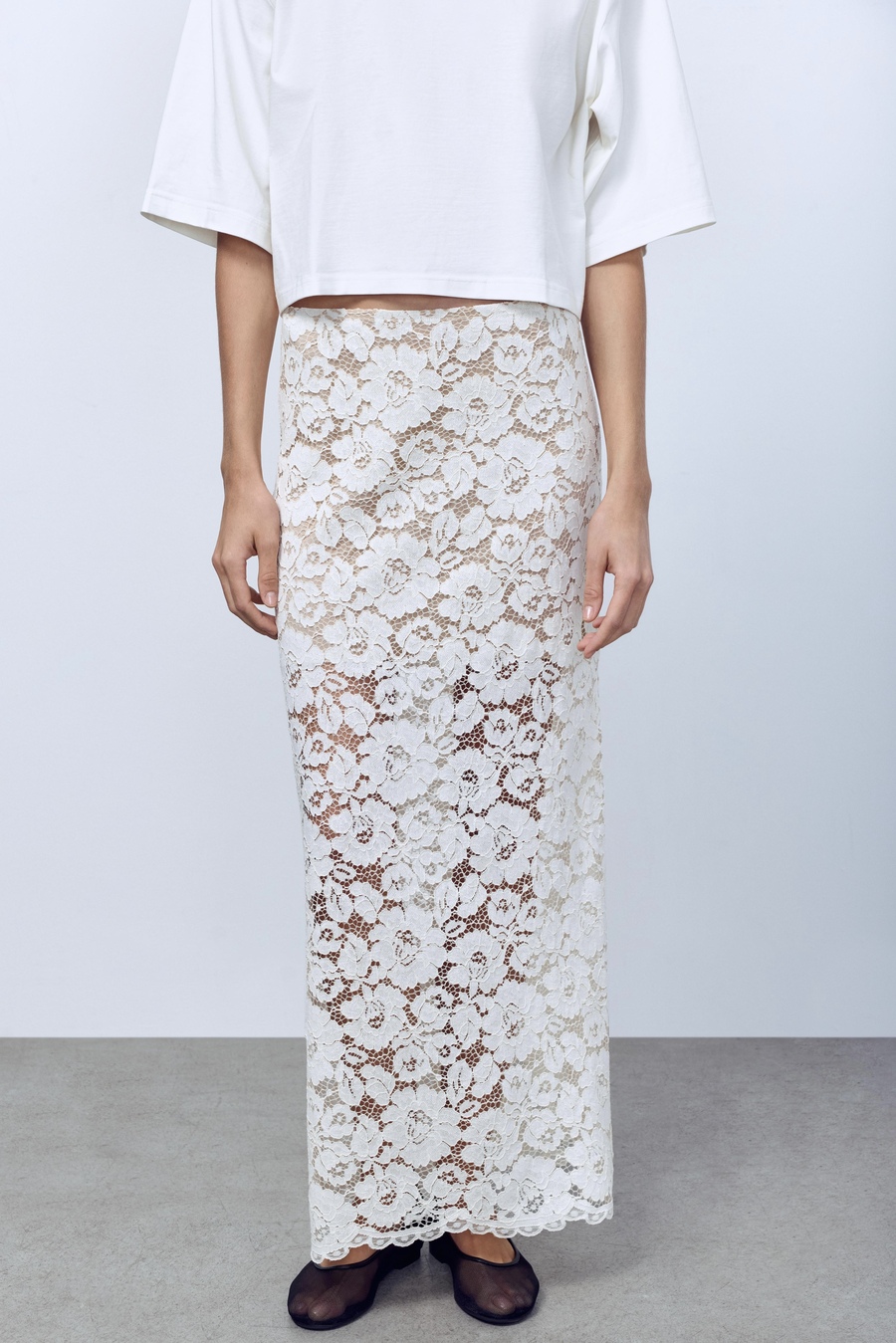Юбка-макси из кружева, кремовый