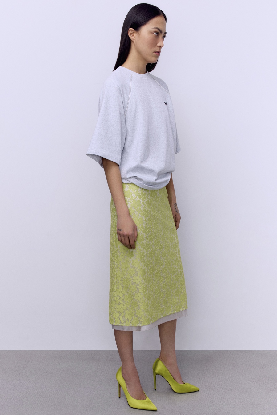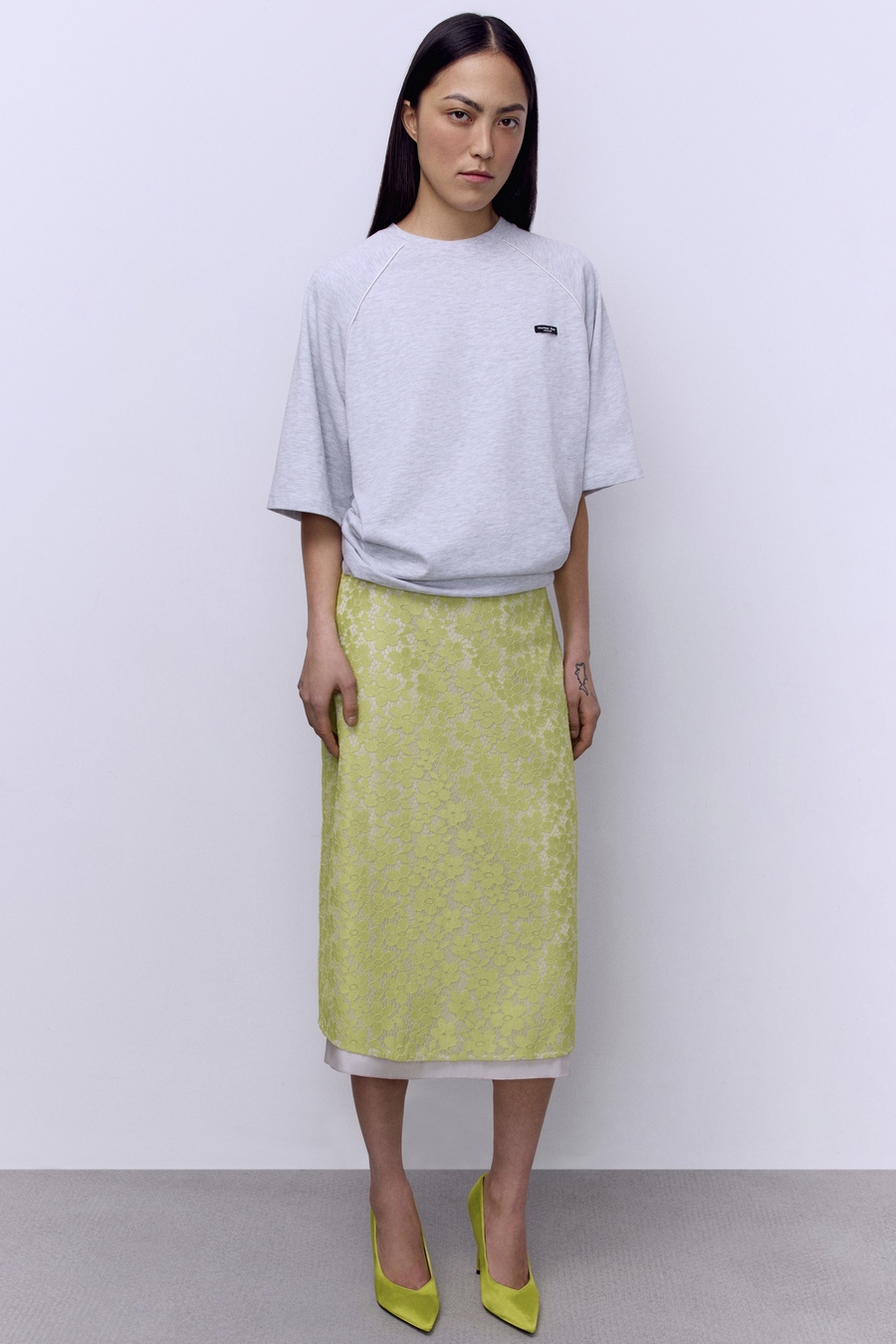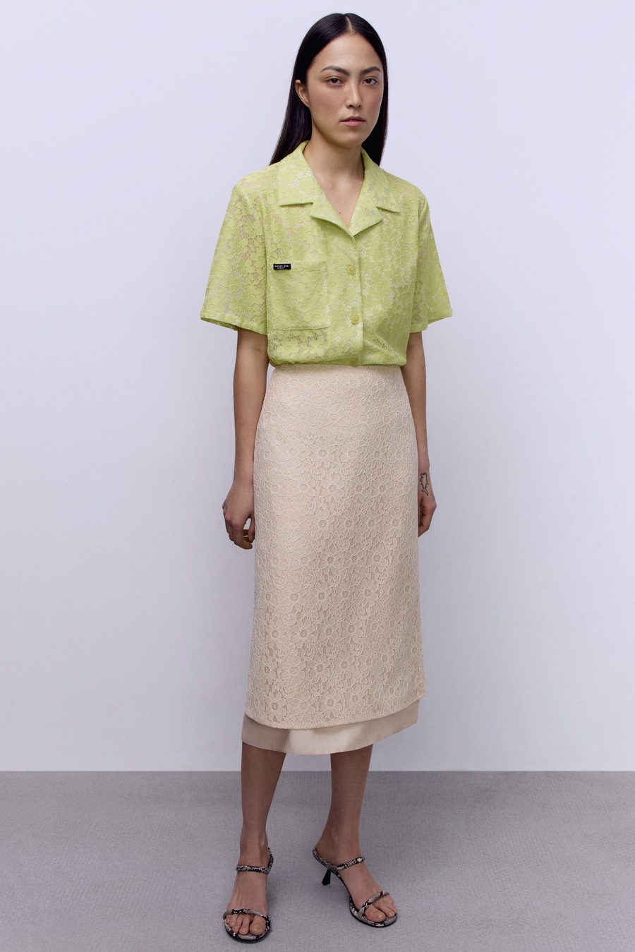 Юбка А-лайн с кружевом, салатовый