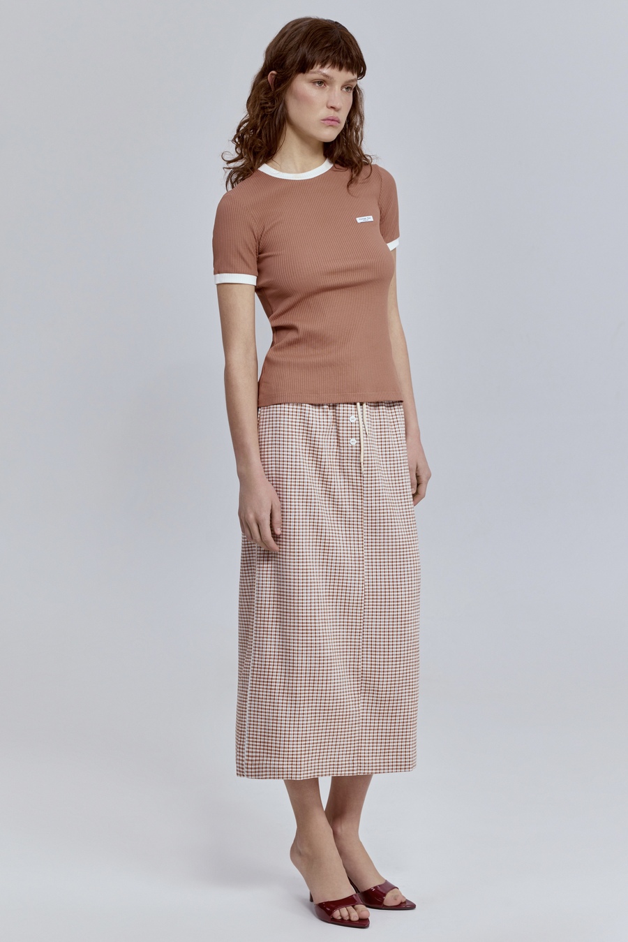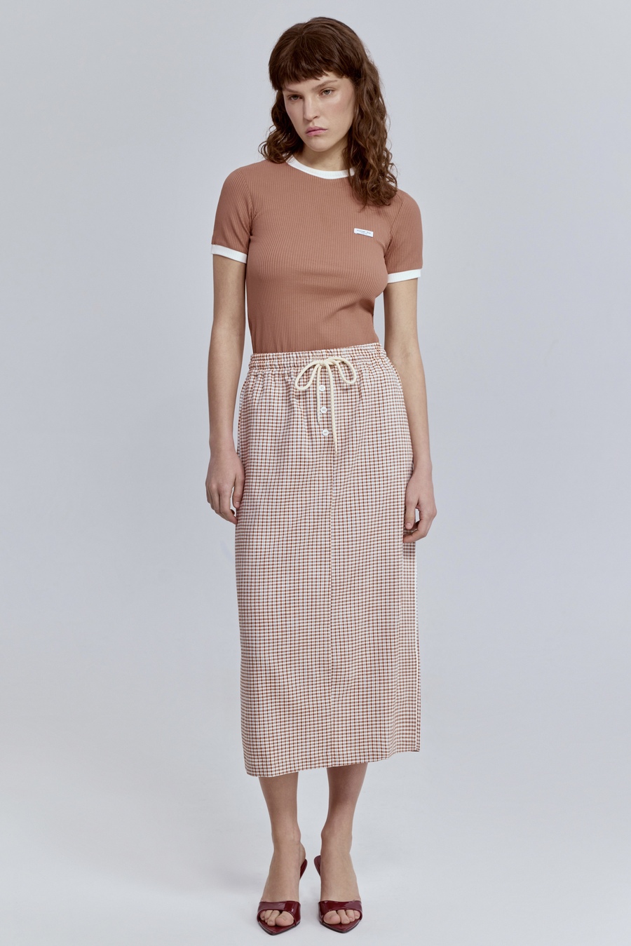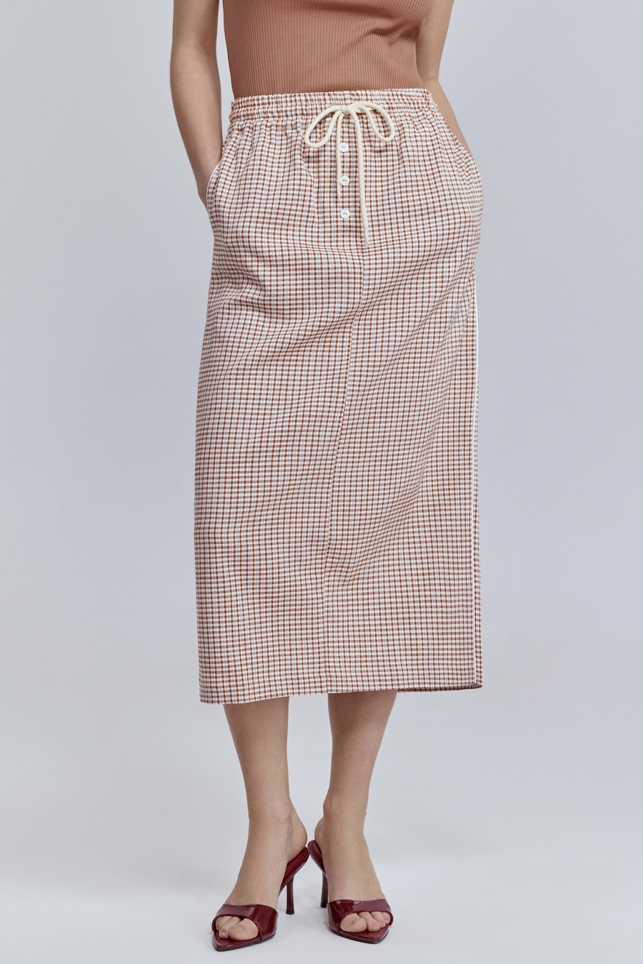 Юбка прямая виши с кантом, терракотовый