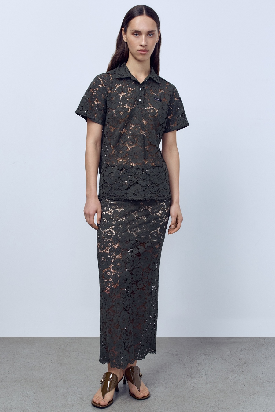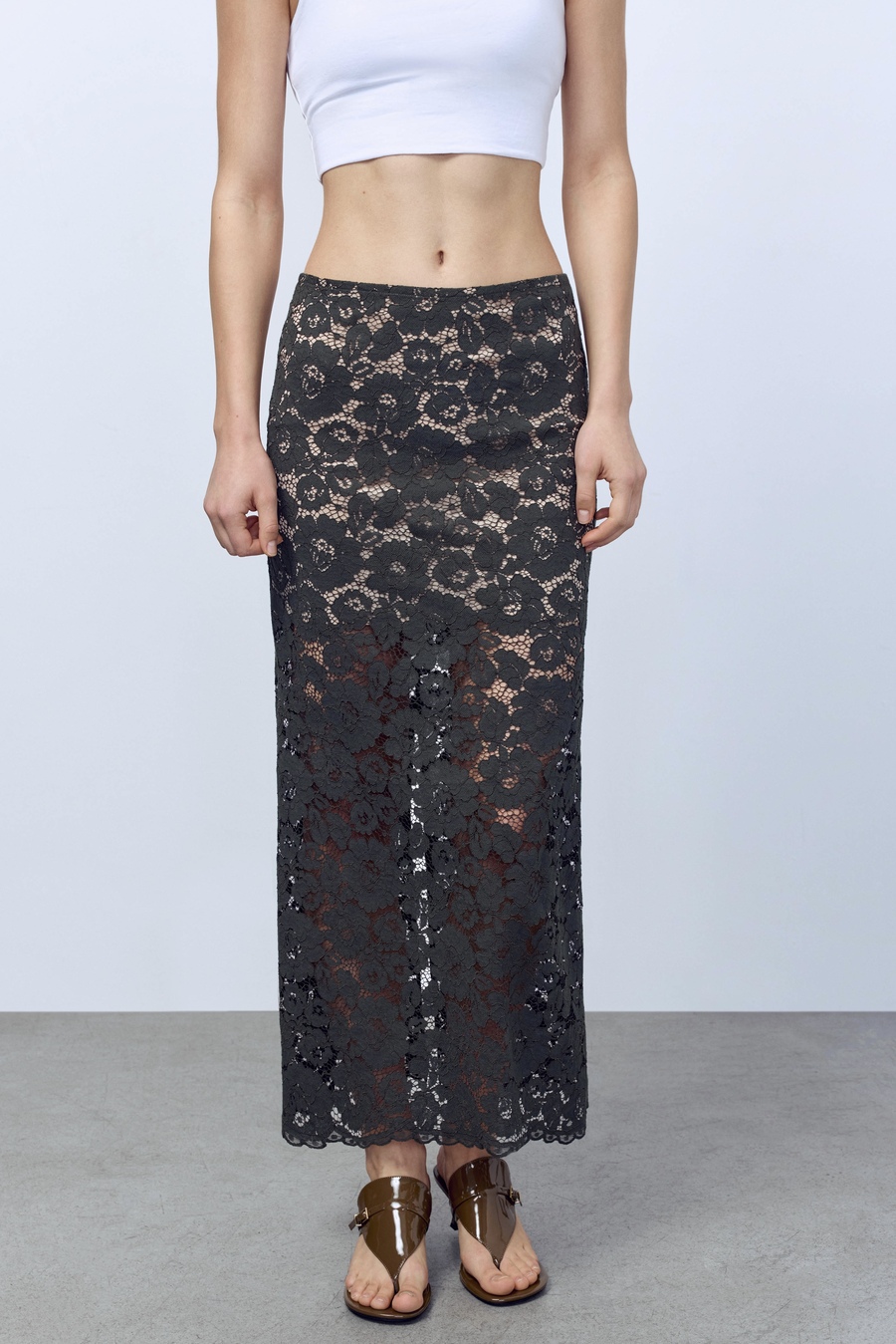 Юбка-макси из кружева, тёмно-зелёный