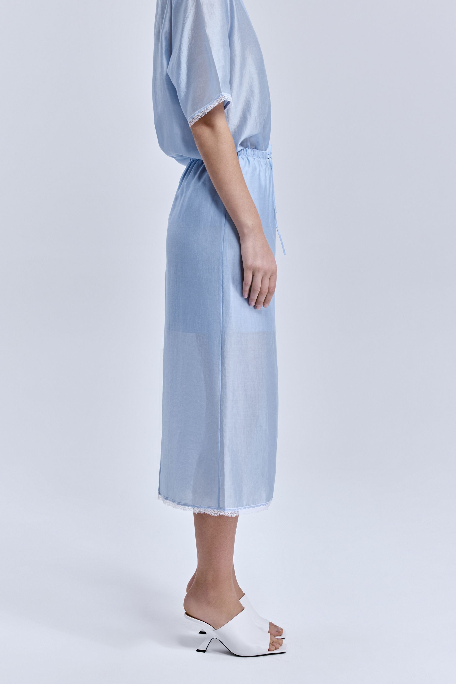 Юбка из батистовой вуали с кружевом, голубой