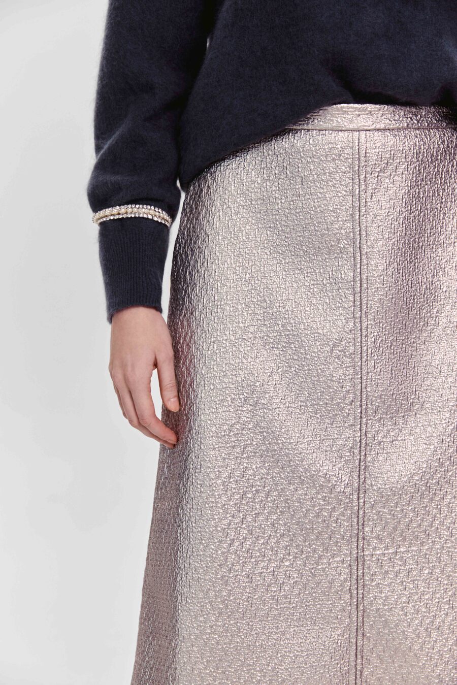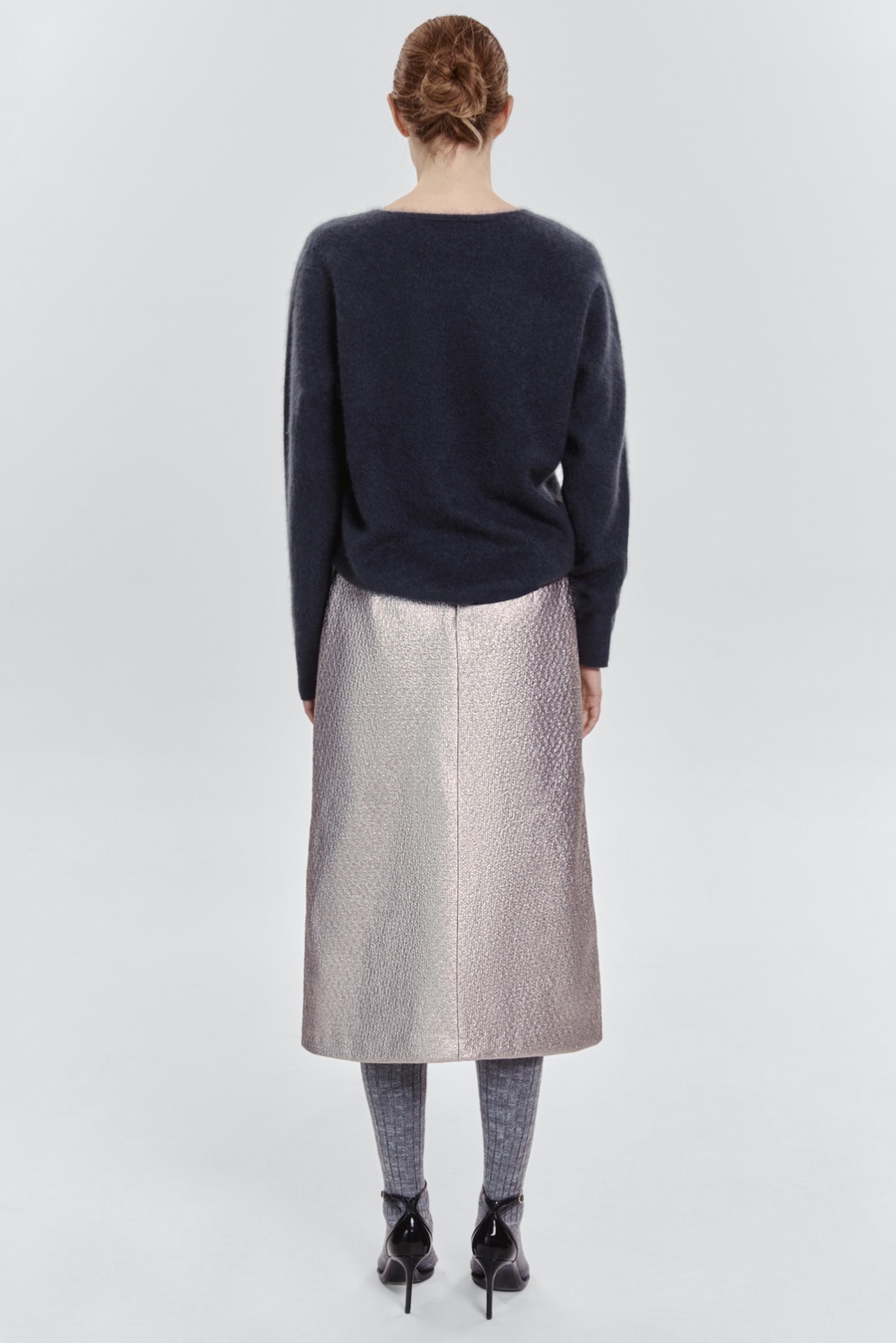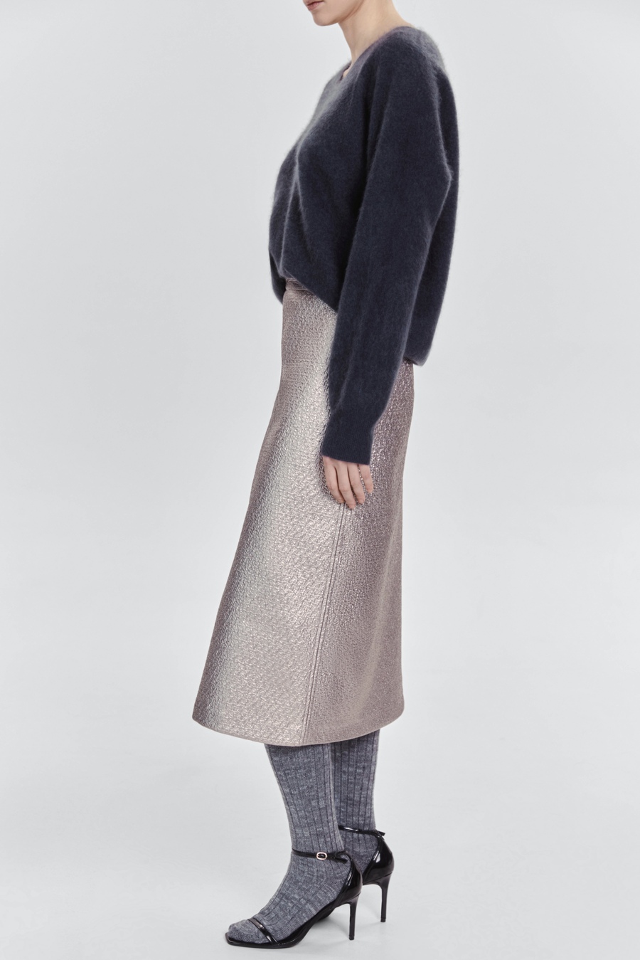 Юбка из лакового твида — акцент, который говорит за вас, ещё до того, как вы войдёте в комнату. Лёгкий глянец ткани ловит свет, а плотная фактура твида подчеркивает уверенность и внутреннюю силу. Это не просто элемент гардероба — это манифест современного стиля.